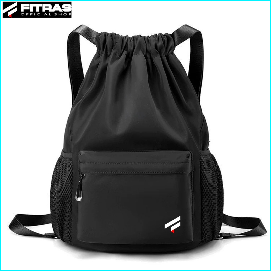 Fitras - Tas Serut Polos Simple Premium Logo Fitras String Bag Gymsack Olahraga Futsal Warna Hitam