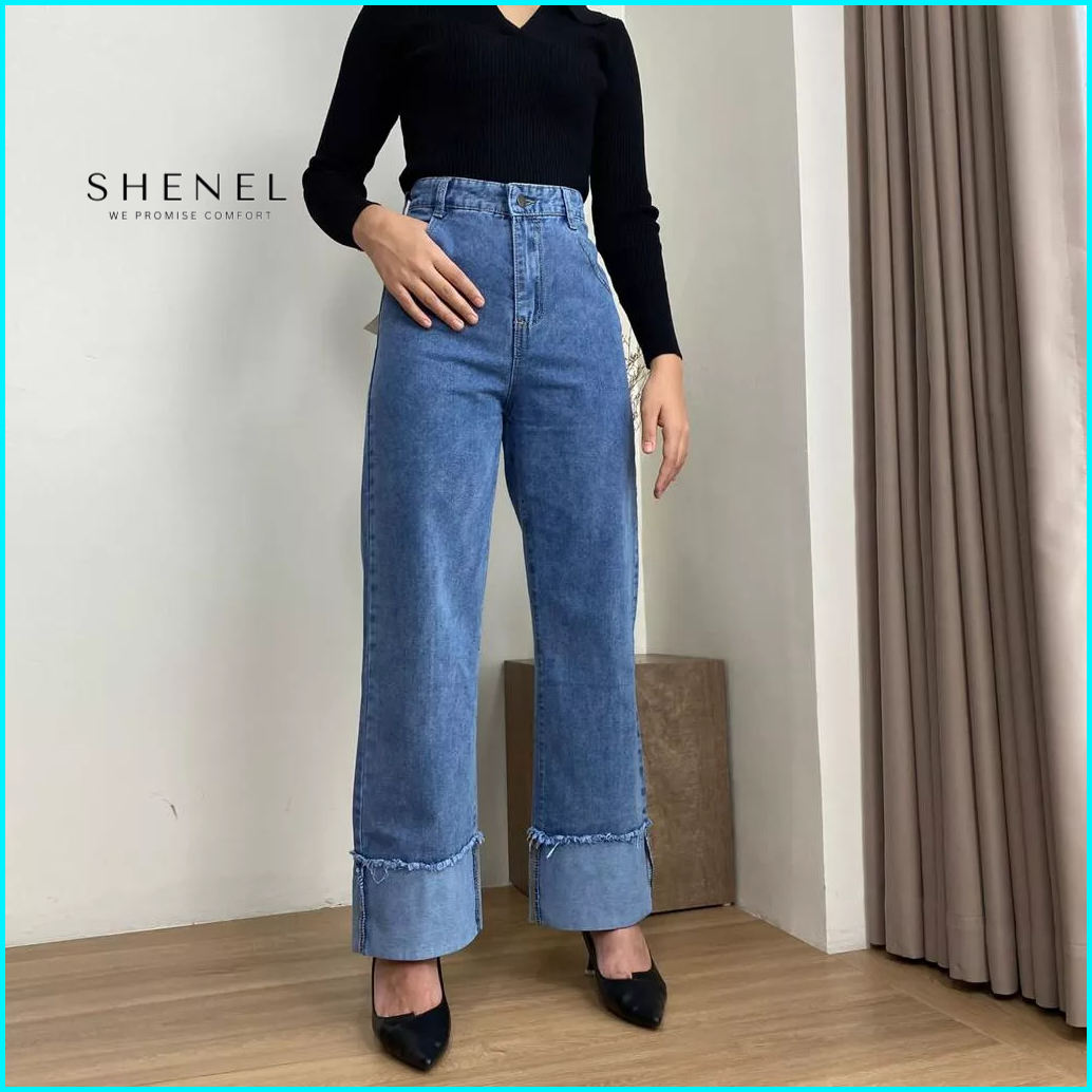 Shenel Aisha Celana Jeans 3104 Wanita High Waist Jeans Kulot High Waist Jeans Boyfriend Import Jeans Panjang