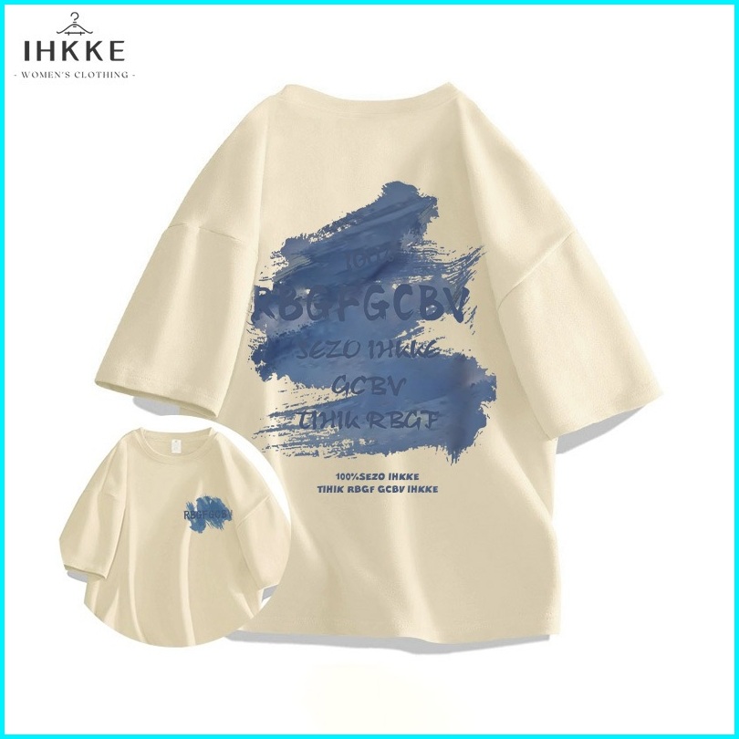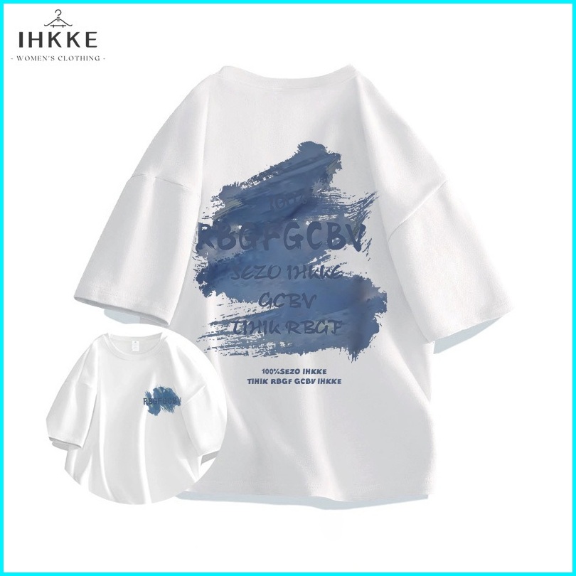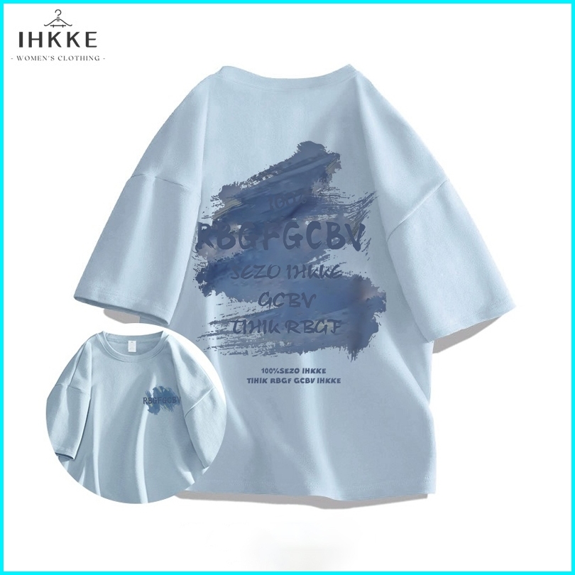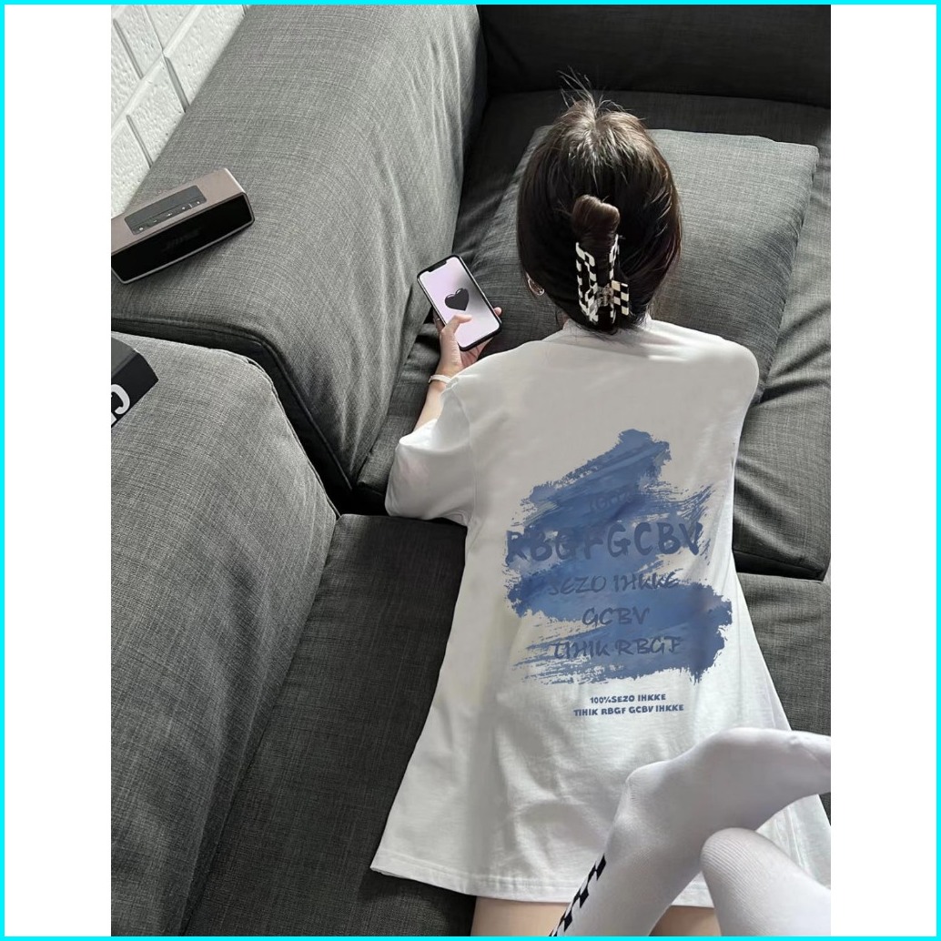 Ihkke Kaos Wanita Baju Oversize Blue Graffiti Korean Style T Shirt 100 Cotton Vintage