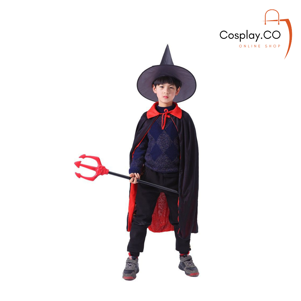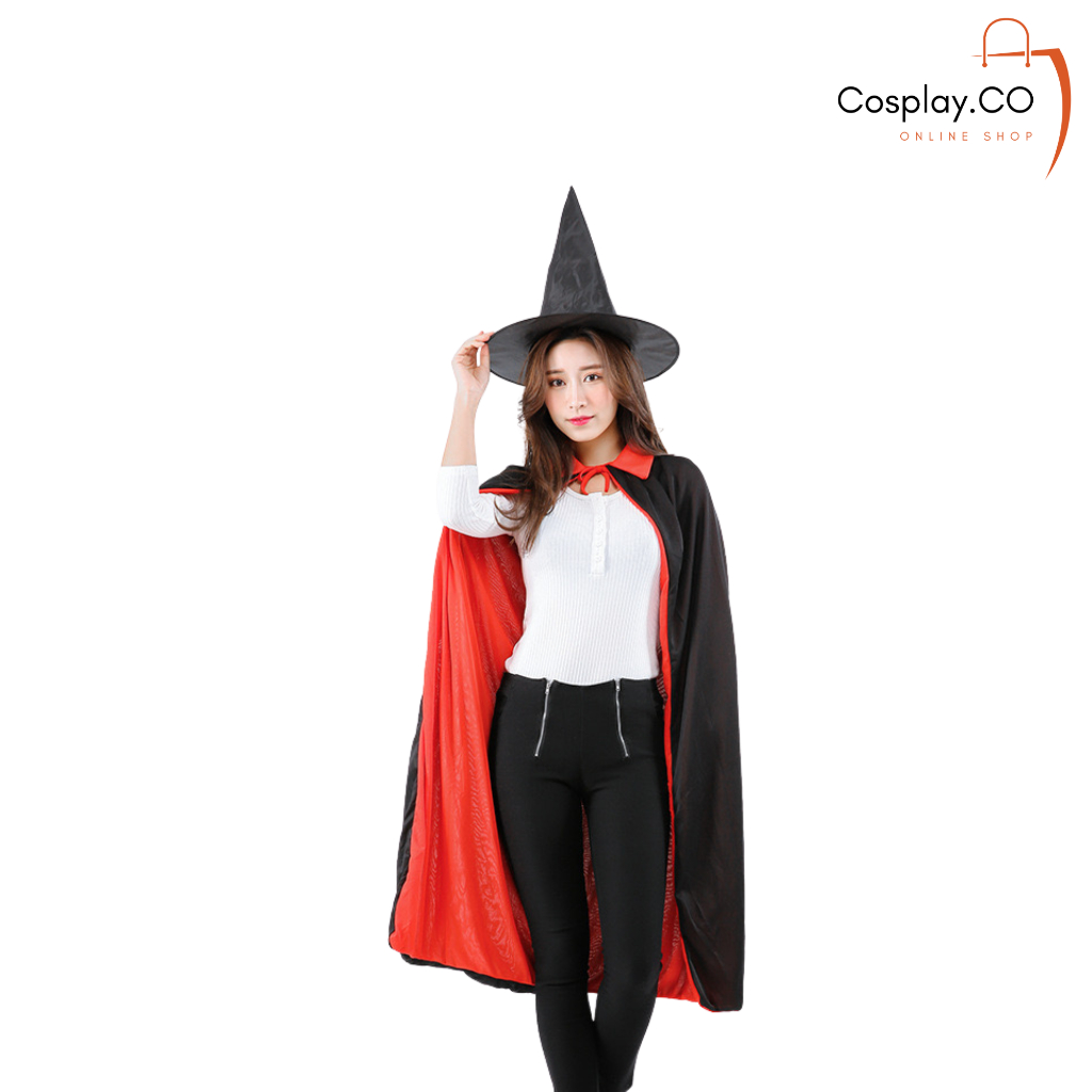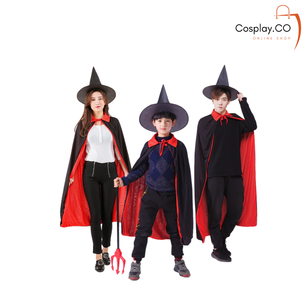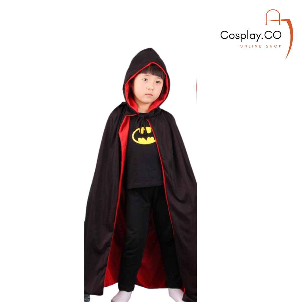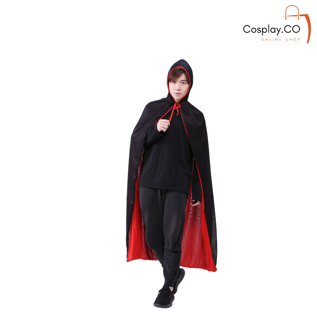Cosplay Kostum Halloween Jubah Kerah Jubah Hoodie Hitam Merah Dewasa Anak Anak