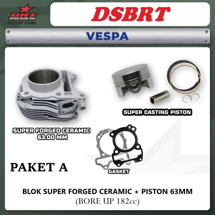 PAKET TOURING BORE UP VESPA BLOK CERAMIC 63 + ECU + NOKEN AS BRT VESPA SPRINT 150 V3 GTS LX S IGET