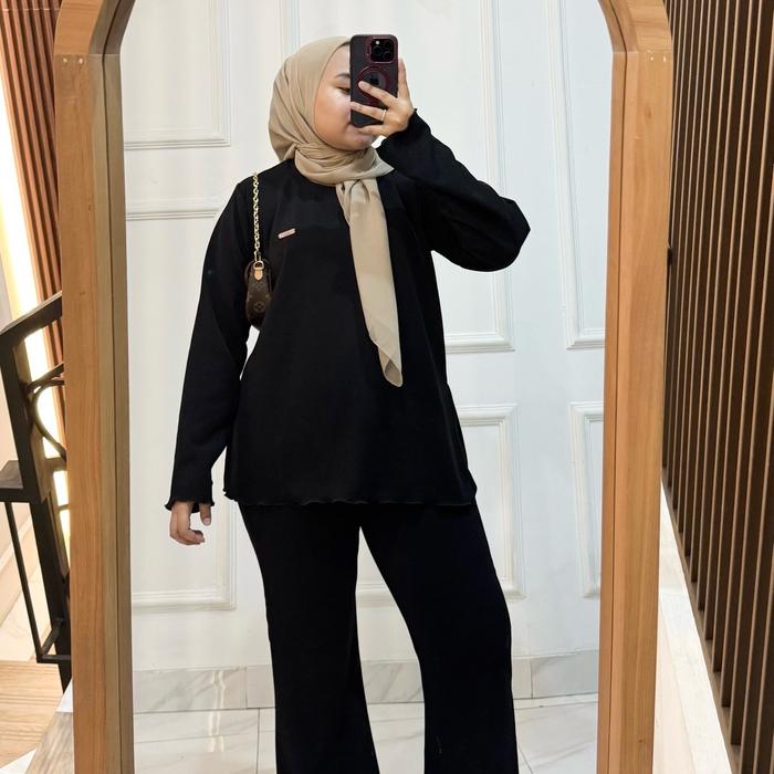 Denacollection Setelan Fuji Celana Cutbray Bahan Knit Japan Premium Casual Santai Celana Dewasa Baju Panjang Nyaman - Bl