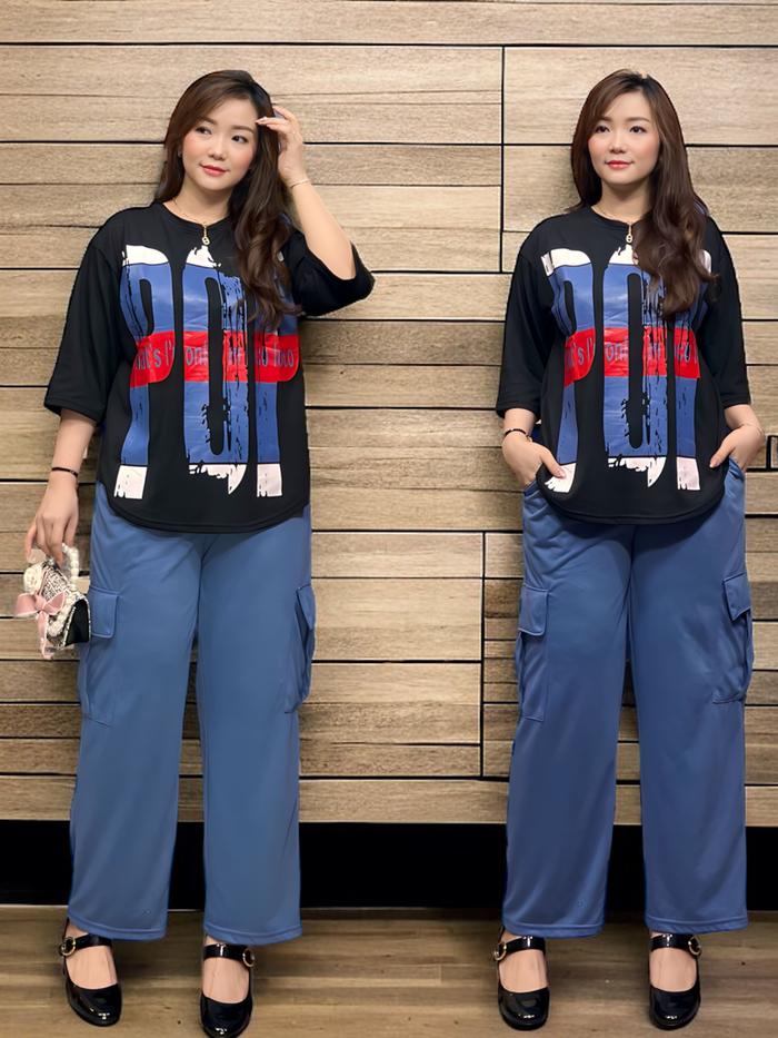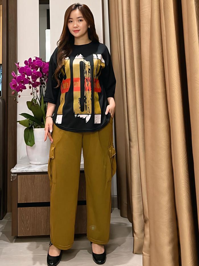 Setelan Cargo Viral Ld120 Stelan Atasan Oversize Celana Cargo Sr2217 Wanita Baju - Lava