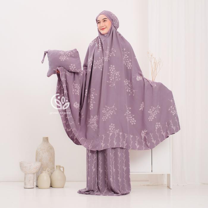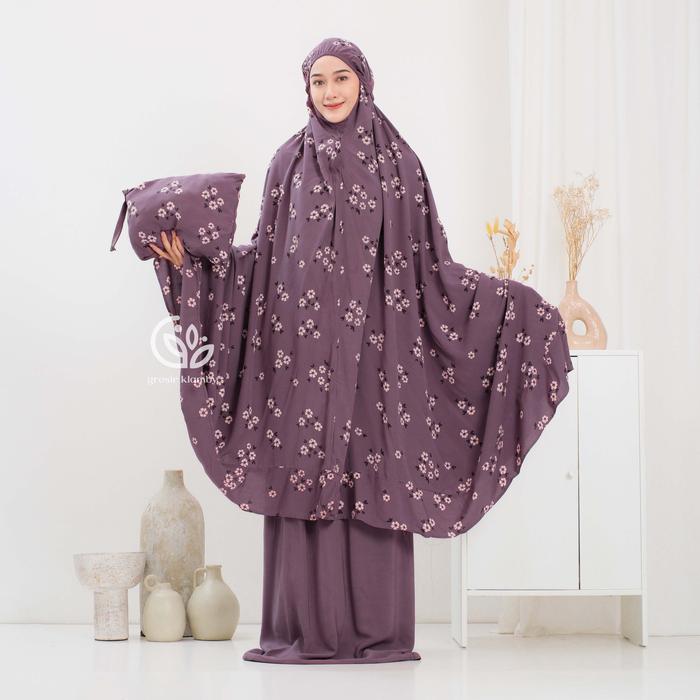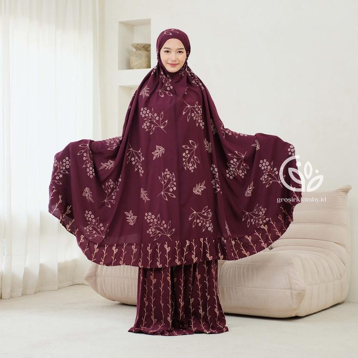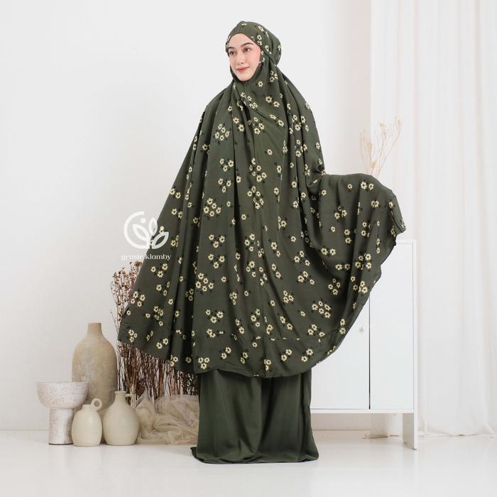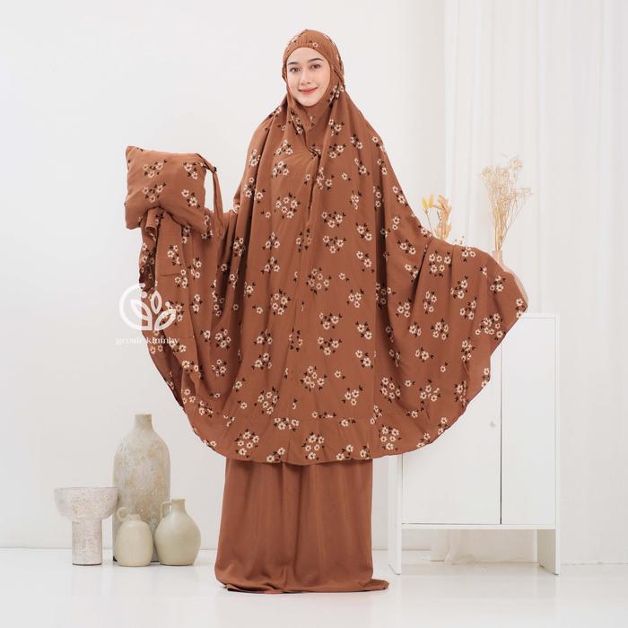 Mukena Batik Rayon Super Jumbo Mina Arafah Bumela Sabila Atasan Bawahan Lembut Nyaman Wanita Motif - Bumela Almond