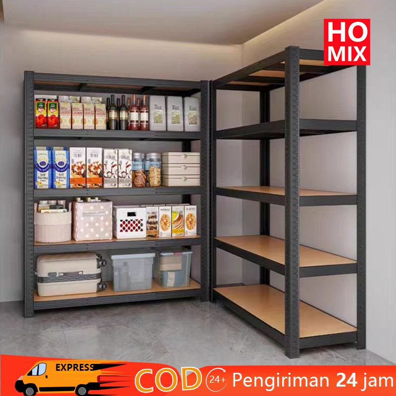 HOMIX Rak Besi Siku Lubang Rak 3/4/5 Susun Rak Besi Serbaguna Rak Buku Minimalis Rak Gudang