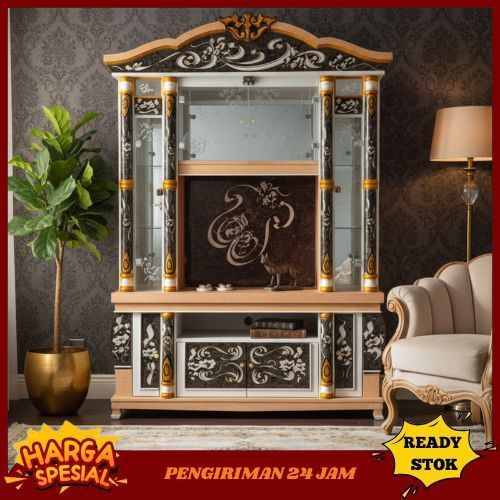 lemari kaca ruang tamu pajangan kristal buffet tv BEST SELLER