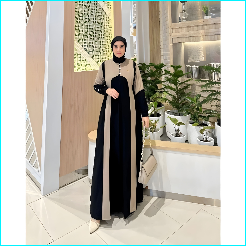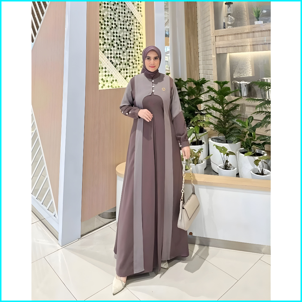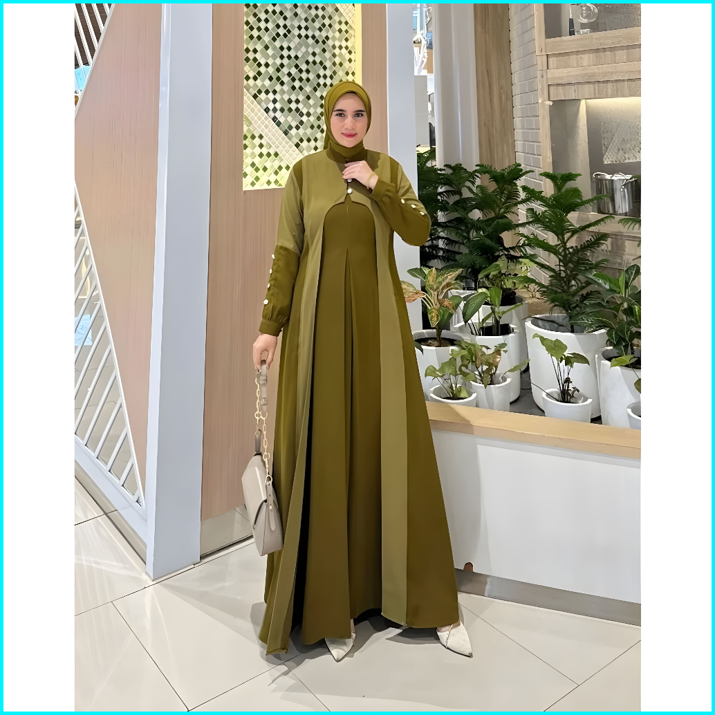 Gamis Lebaran Super Mewah Model Terbaru 2026 Aura Bahan Ceruty Baby Doll Dua Layer Full Furing