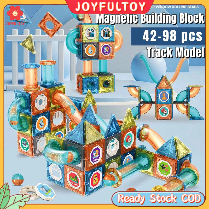 【Murah 】 Building Brick 42/68/98Pcs Magnetic Blocks Mainan Edukasi Susun Kepingan Magnetic Set Bola Dan Rail / Magnetic