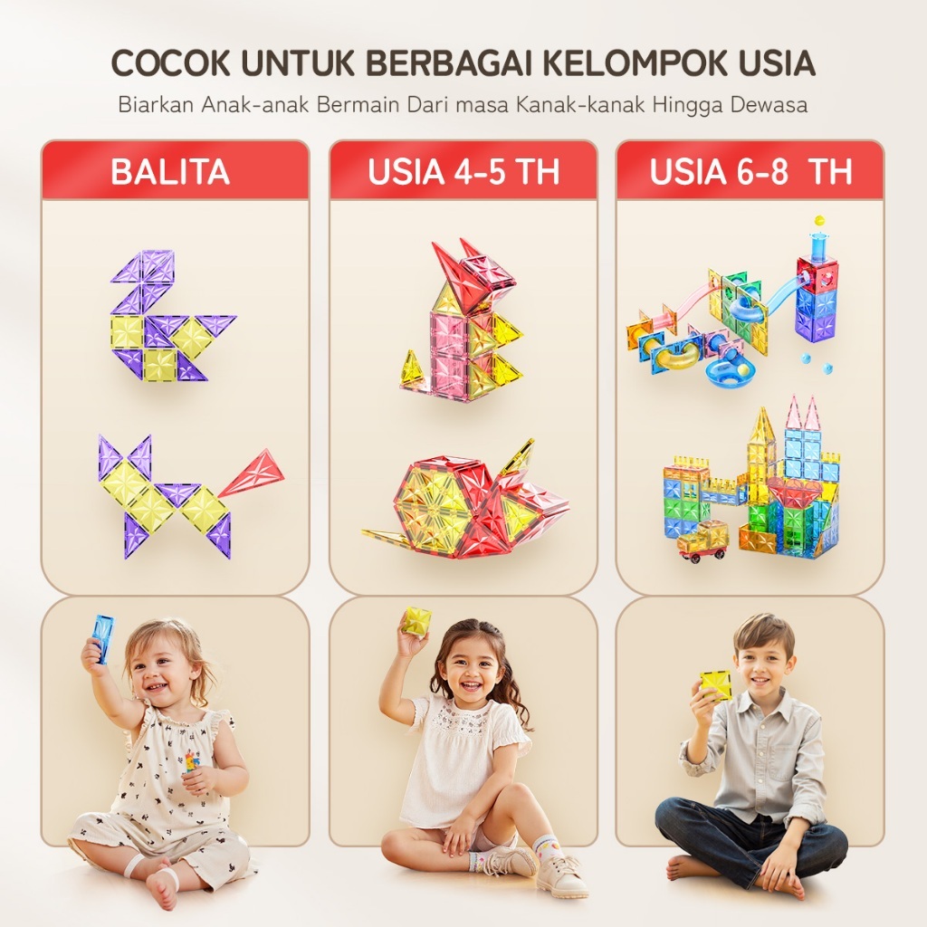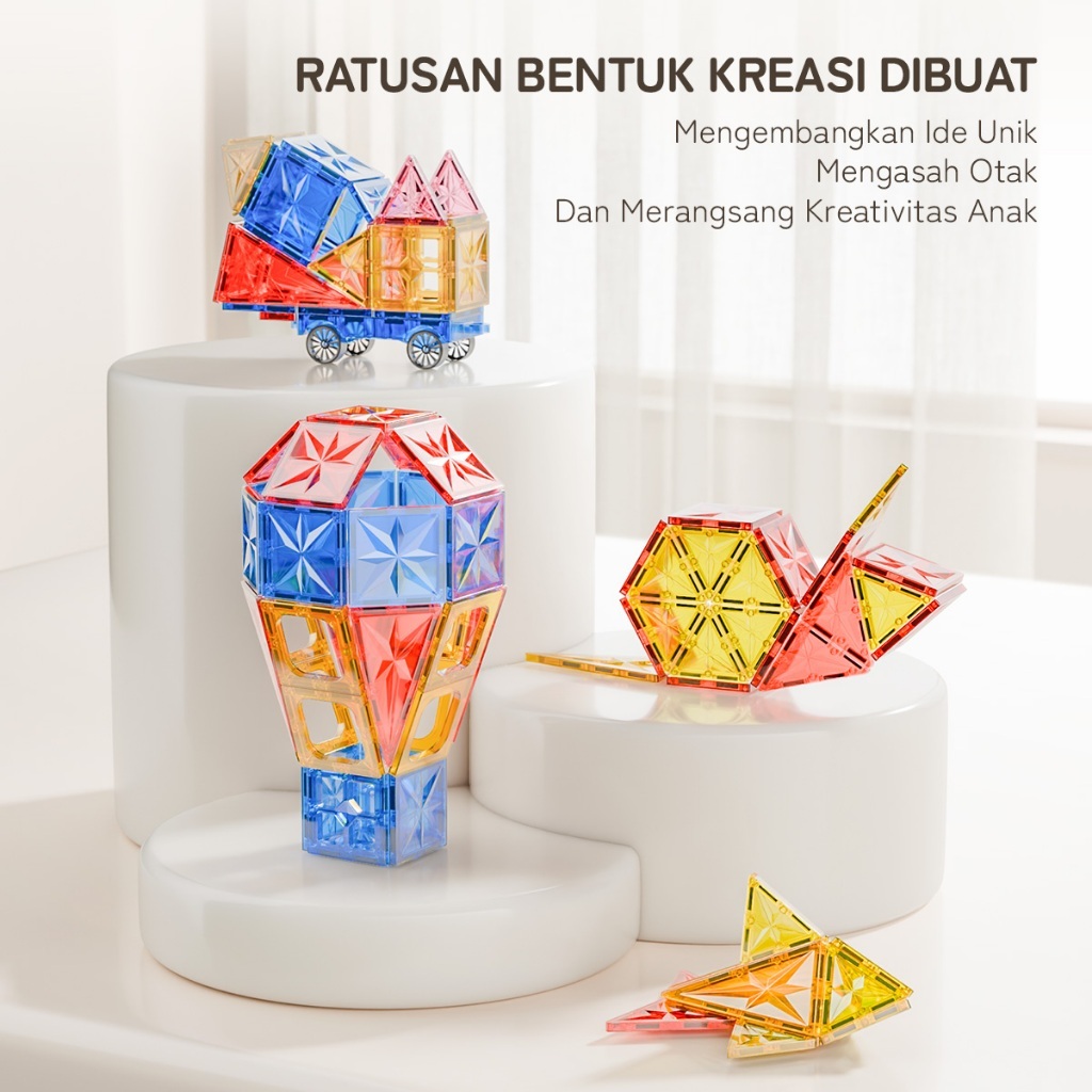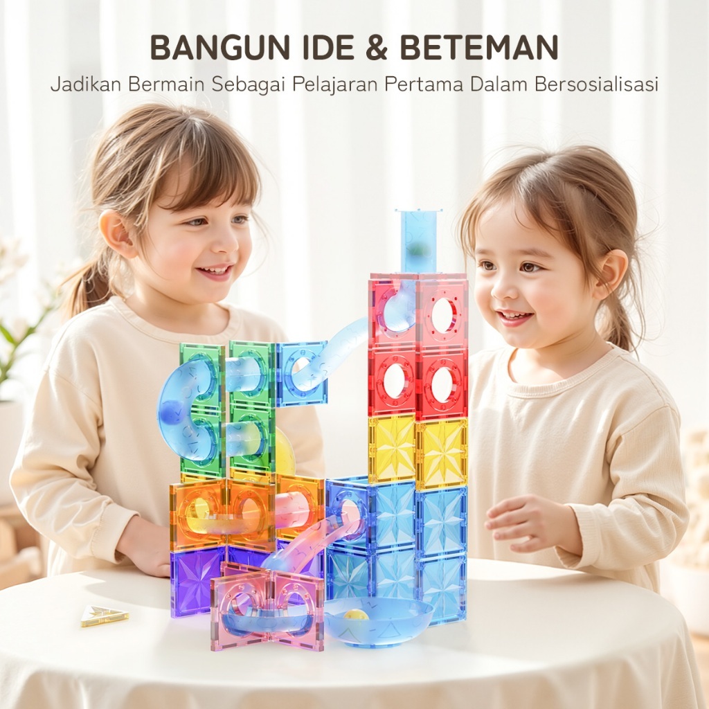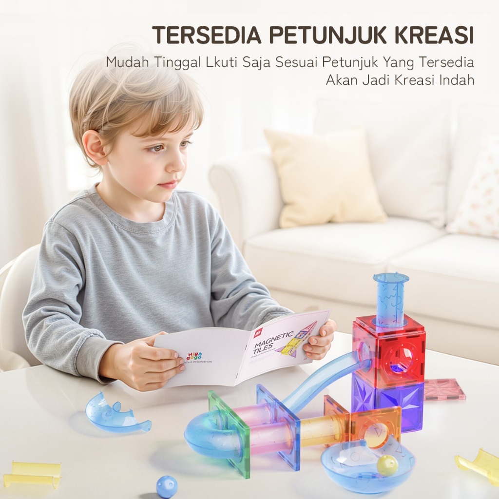 Momwell Mainan Magnetic 4D Tiles Building Blocks Mainan 63Pcs Marble Run Race Mainan Edukasi