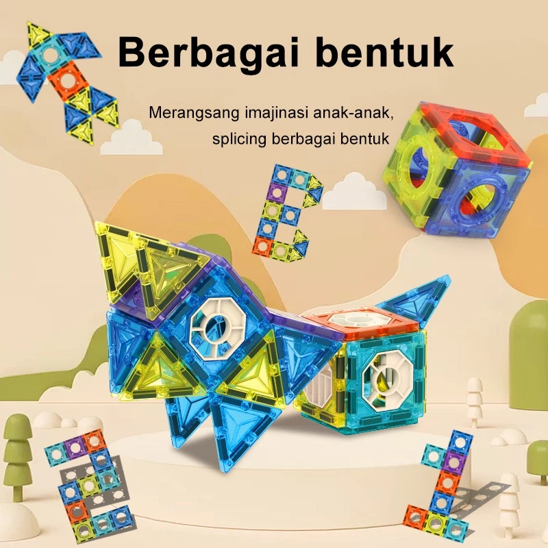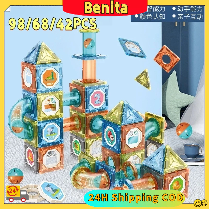 【24H 】98/68/42pcs Magnetic 3D Paradise Tiles / Mainan Anak Edukasi Kepingan Plat Magnetic Set Bola Dan Rail / Mainan Ma
