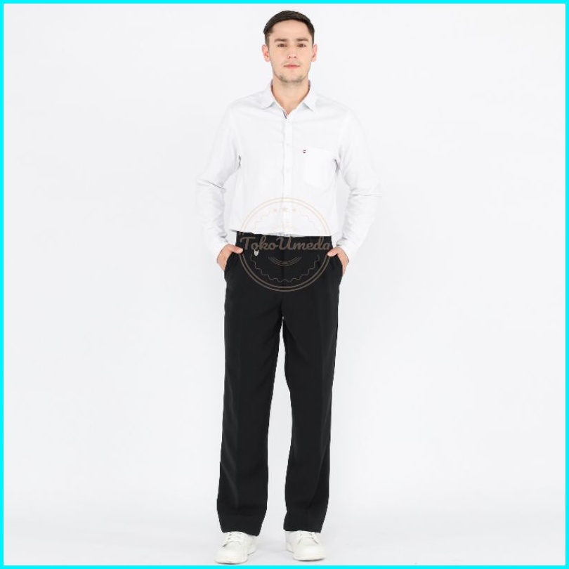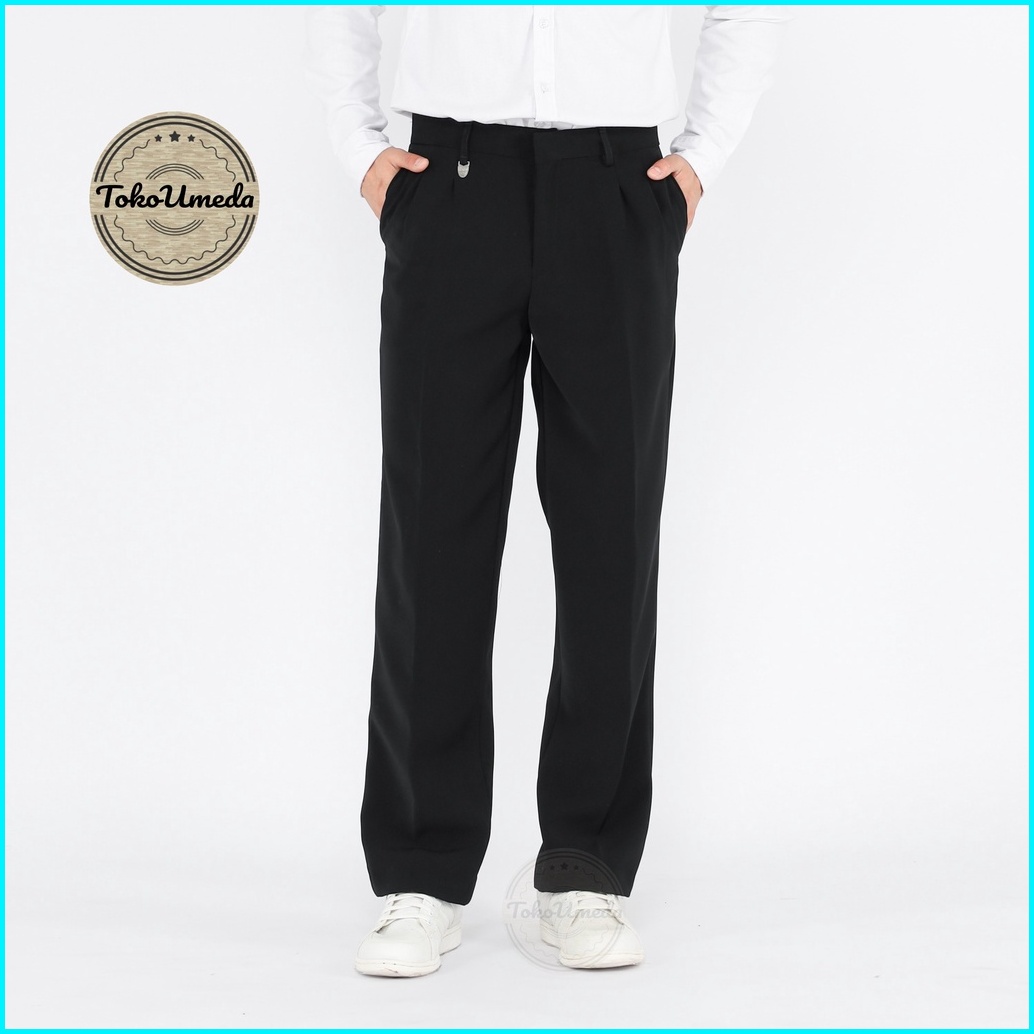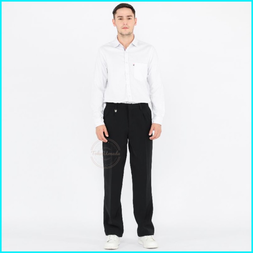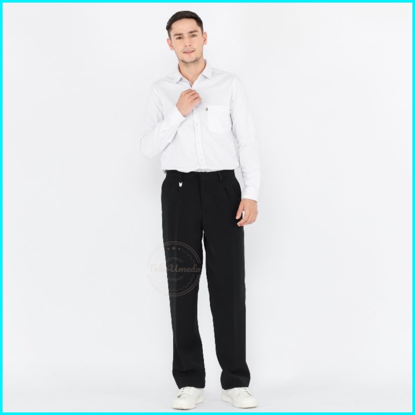 Celana Bahan Pria Formal Reguler Fit Standar Panjang Kerja Kantor Hitam Dasar Pria
