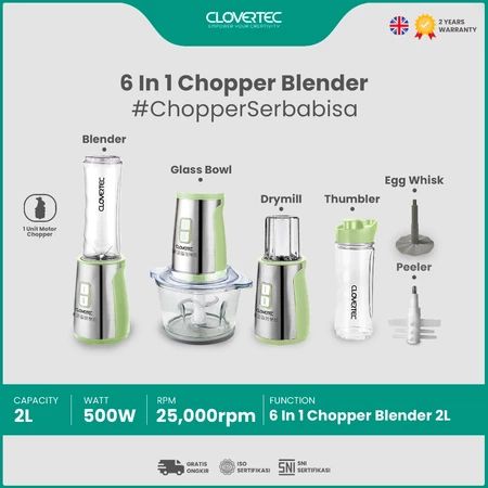 CLOVERTEC Chopper Blender 6in1 Multifunction 2L CCP-250 GARANSI RESMI