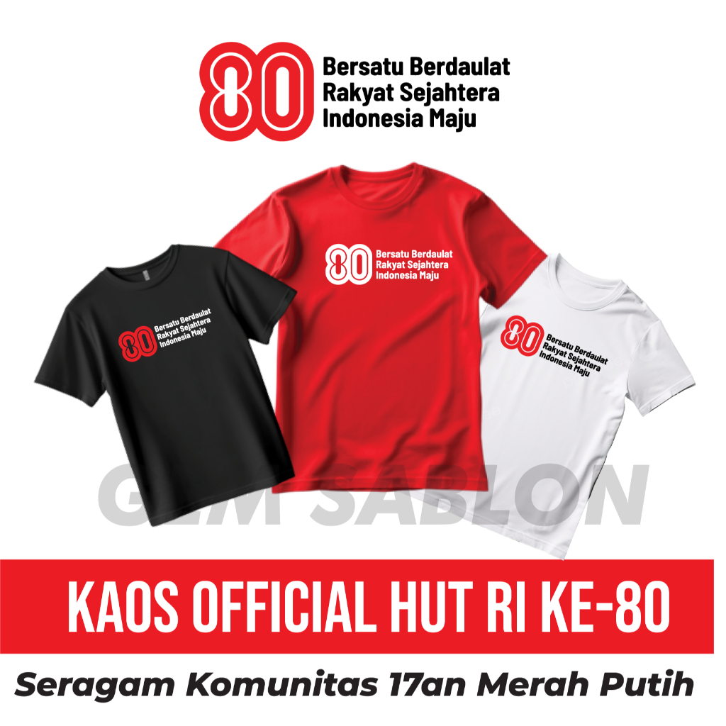 Kaos Offical HUT RI 80 Tahun | Kaos Kemerdekaan 17 Agustus Merah Putih Kaos Anniversary RI Pria Dan Wanita