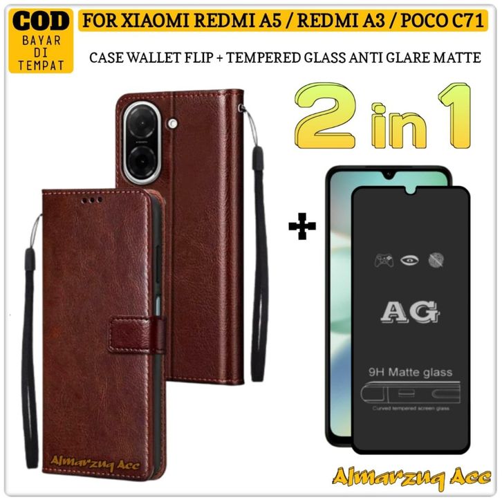 Paket 2in1 Case Wallet Xiaomi Redmi A5 Redmi A3 Poco C71 Casing Dompet Anti Gores Kaca Full Layar