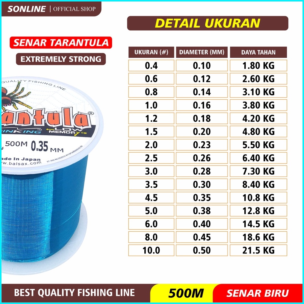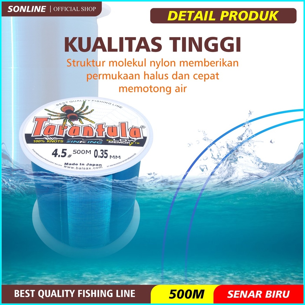 Sonline Tali Pancing 500m Senar Pancing Tarantula Warna Biru Fishing Line Senar Kuat Tahan Bahan Nilon Impor