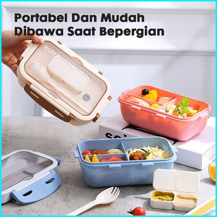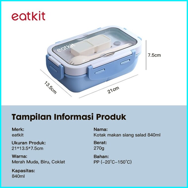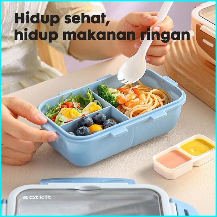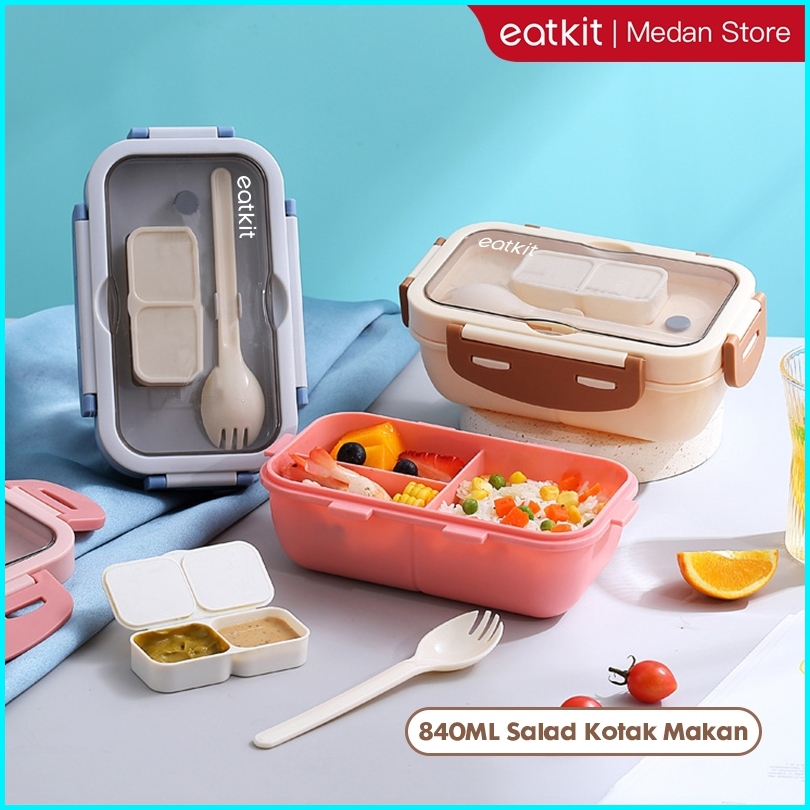 Medan Ready Stock Eatkit Set Kotak Makan Siang 840ml Desain Kompartemen Lunch Box Microwave Gratis Alat Makan Box Saus