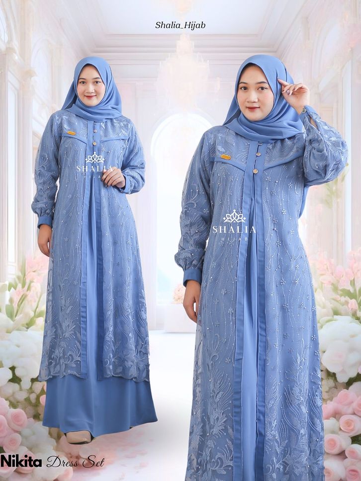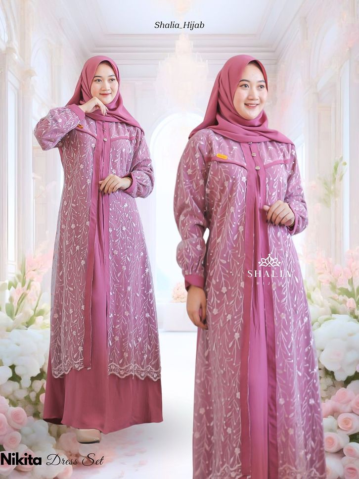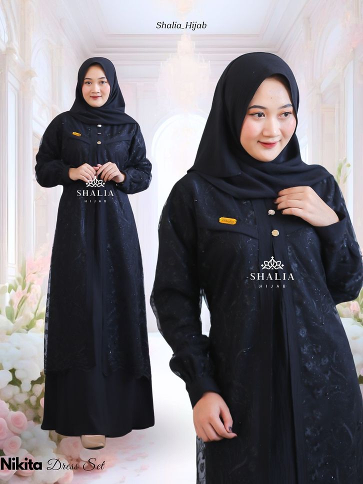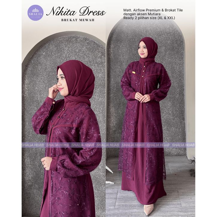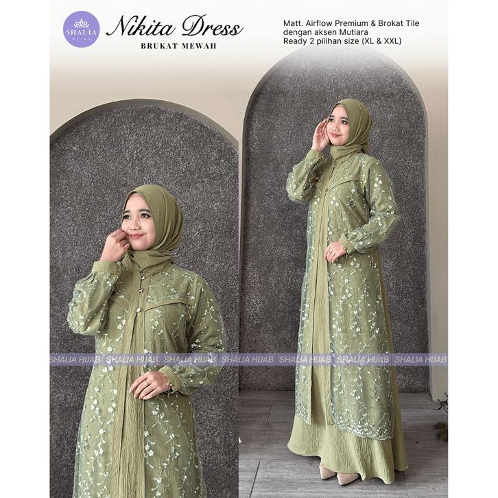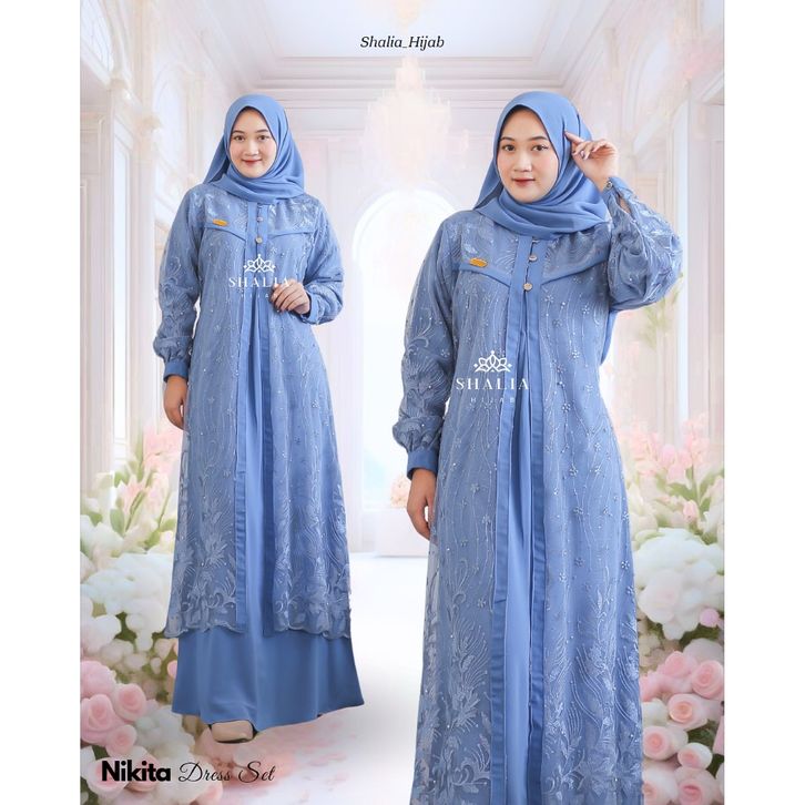 dress eksklusif nikita brukat tille glitter mix crinkle premium lengkap set hijab murah gamis hayya wanita muslim