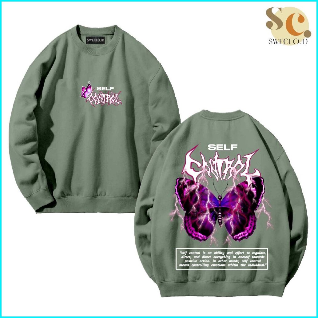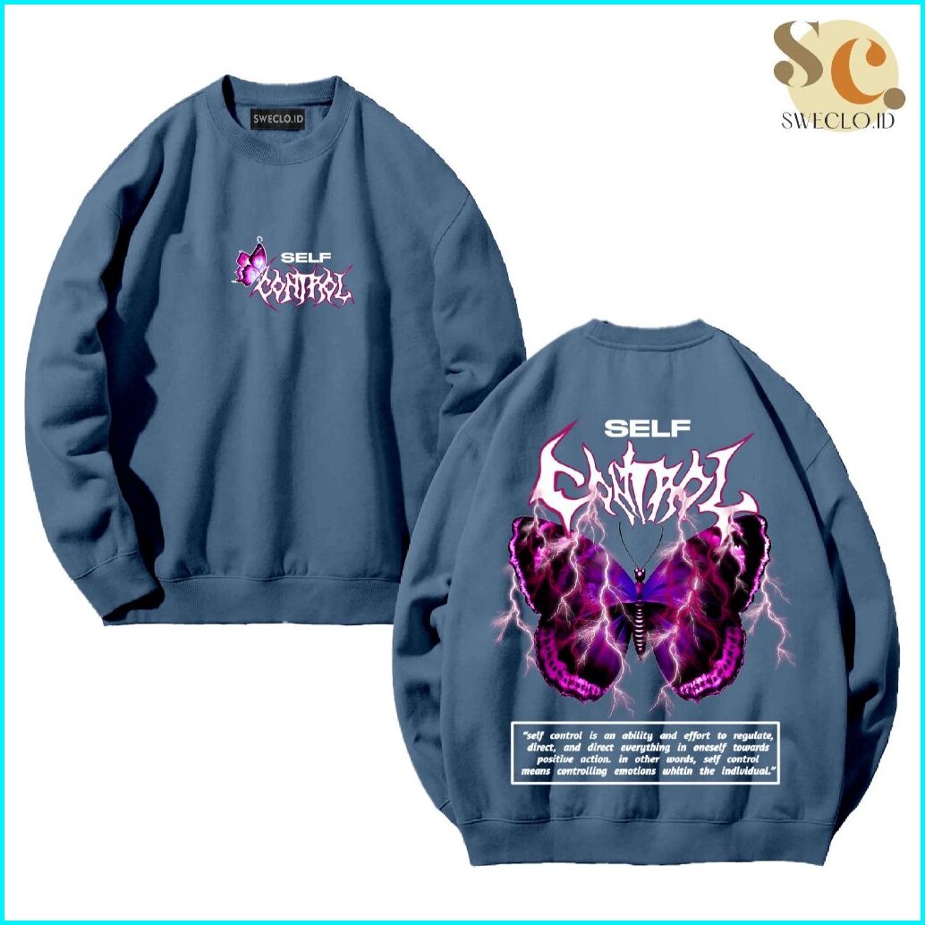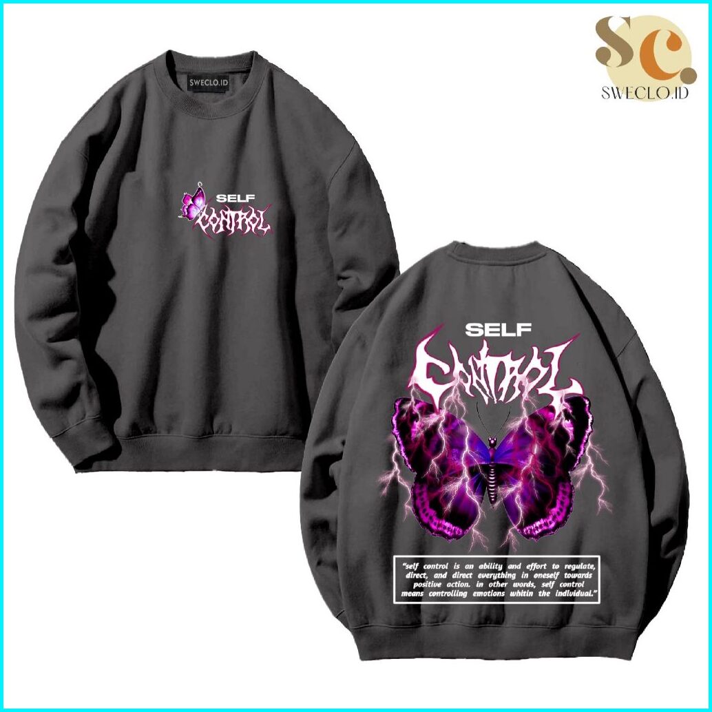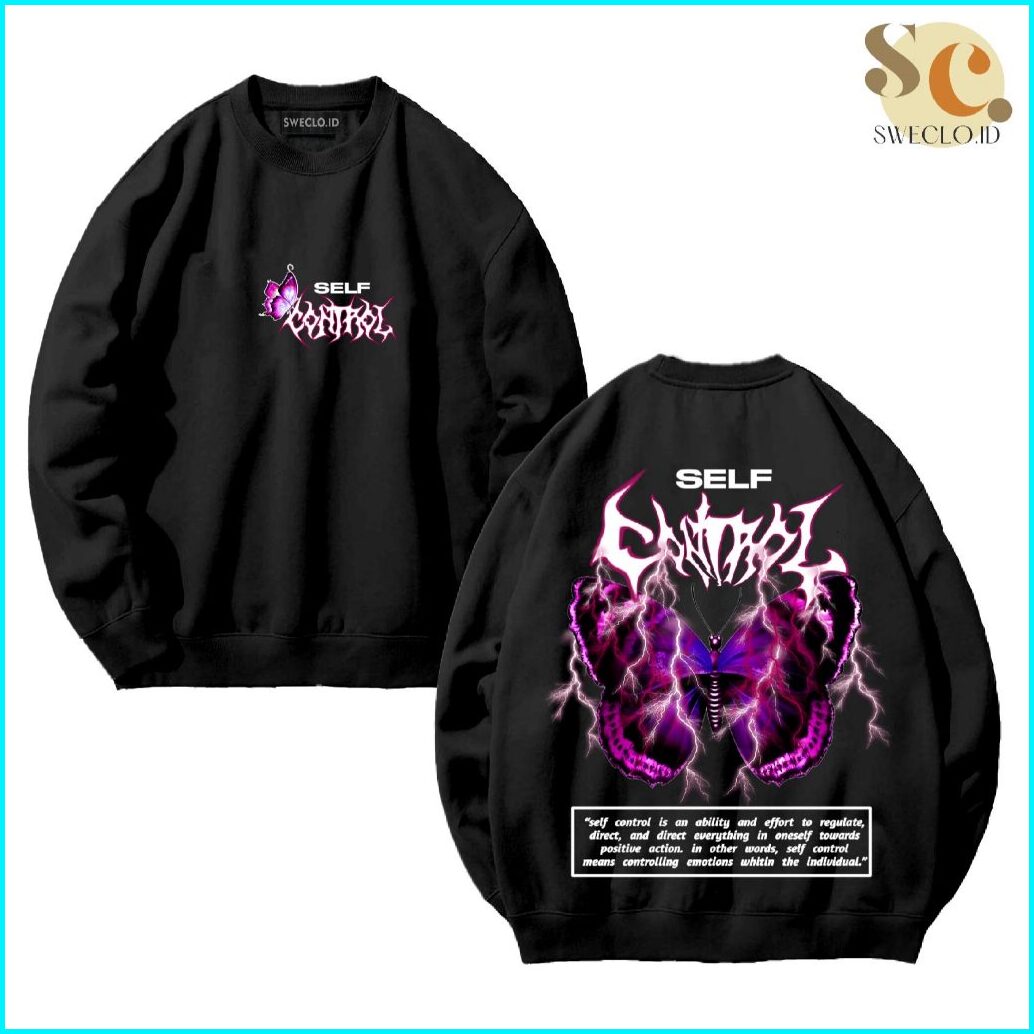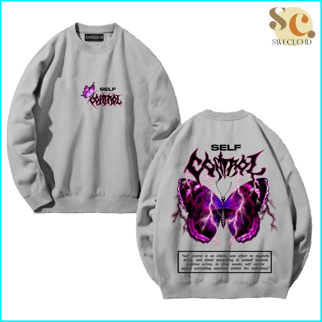 Sweclo.id Basic Sweater Crewneck Self Control Butterfly Sablon Size M-xxl Pria Dan Wanita
