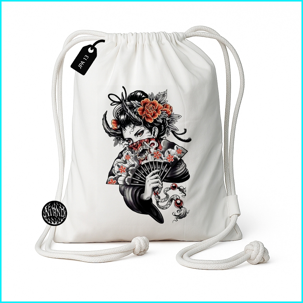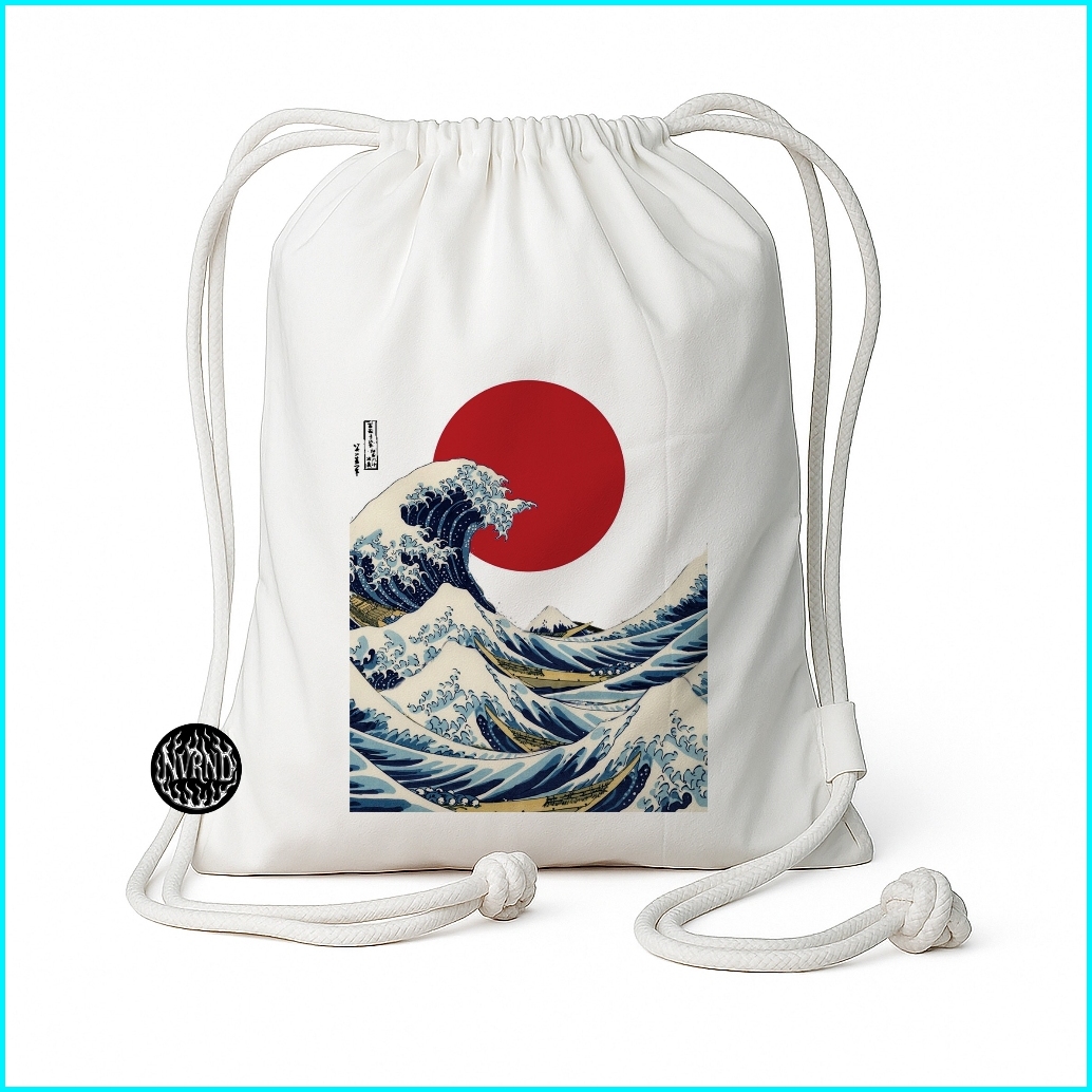 Nvrnd Tas Serut Kanvas Japanese Art - Travel Bag Unisex Tali Tebal Premium Jpa0916