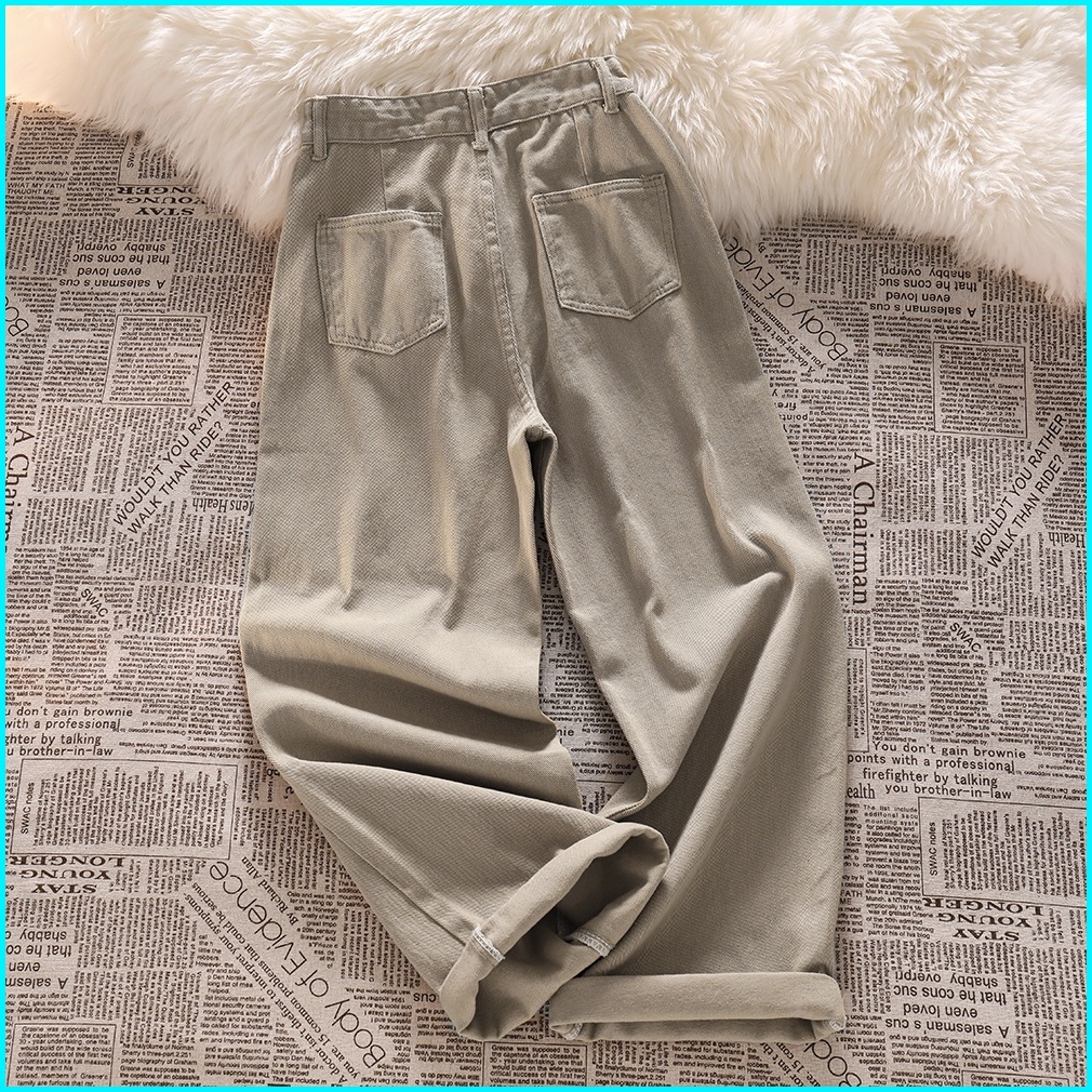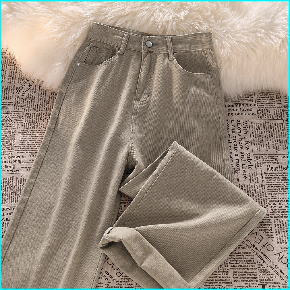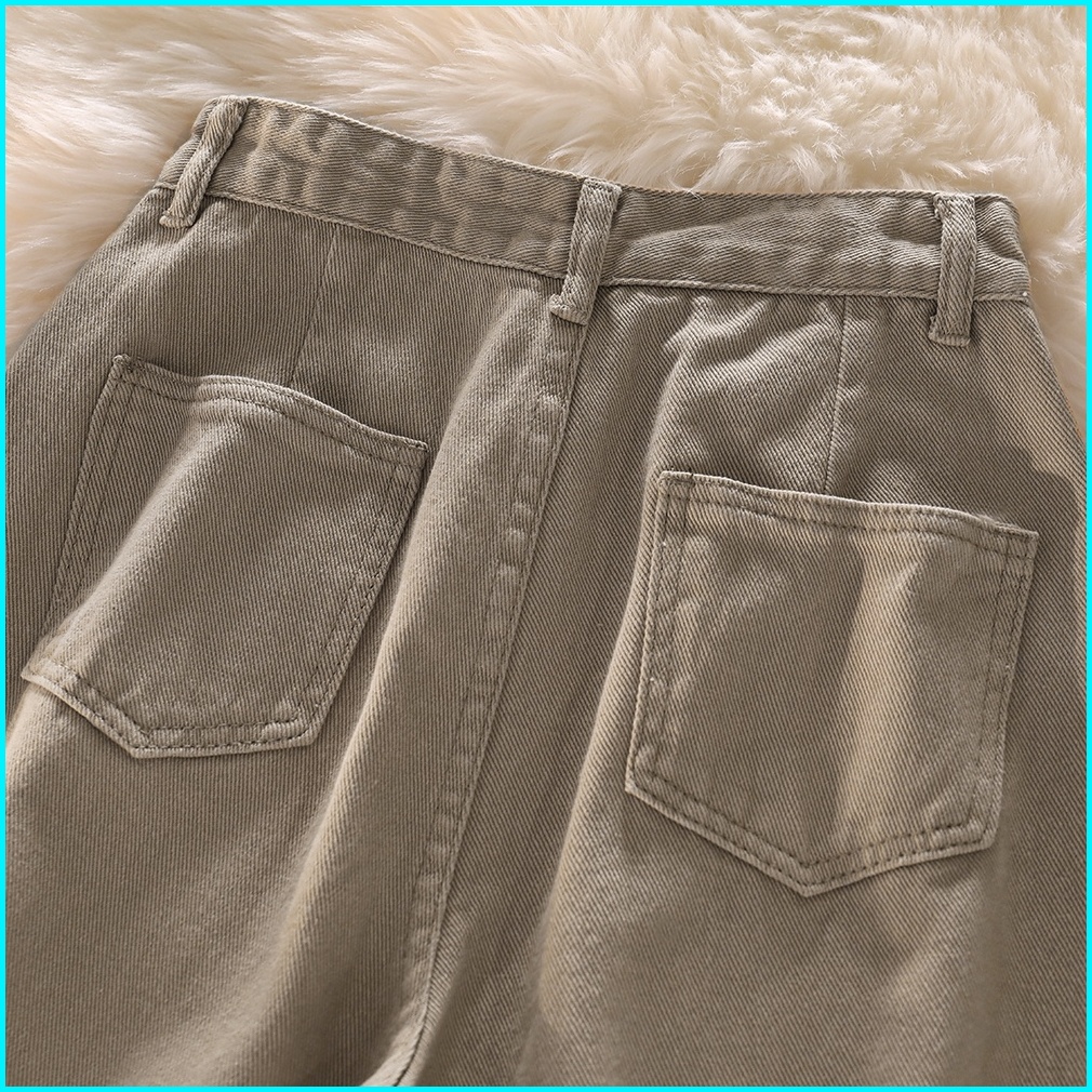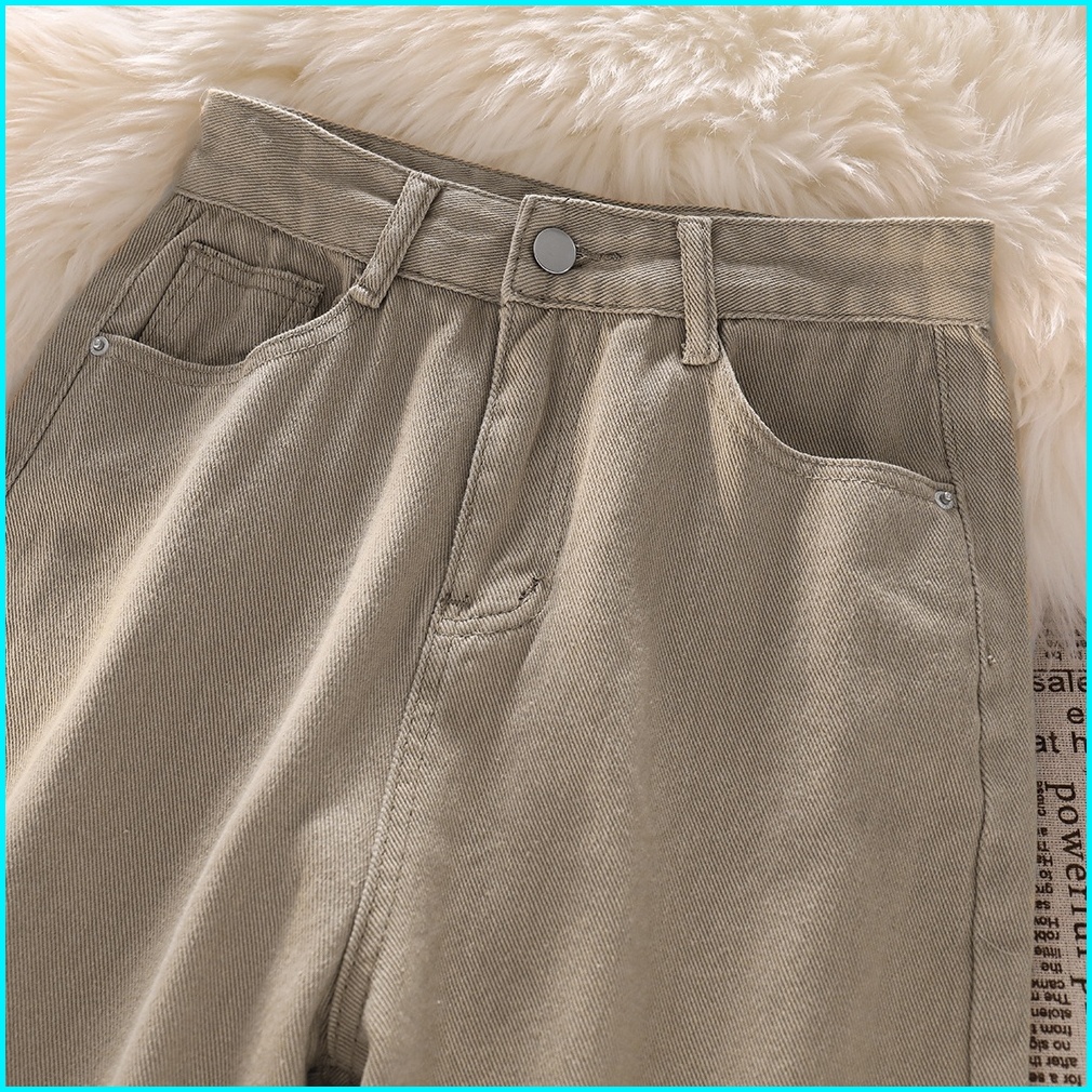 Warna Khaki Highwaist Loose Kasual Celana Jeans Panjang Wanita