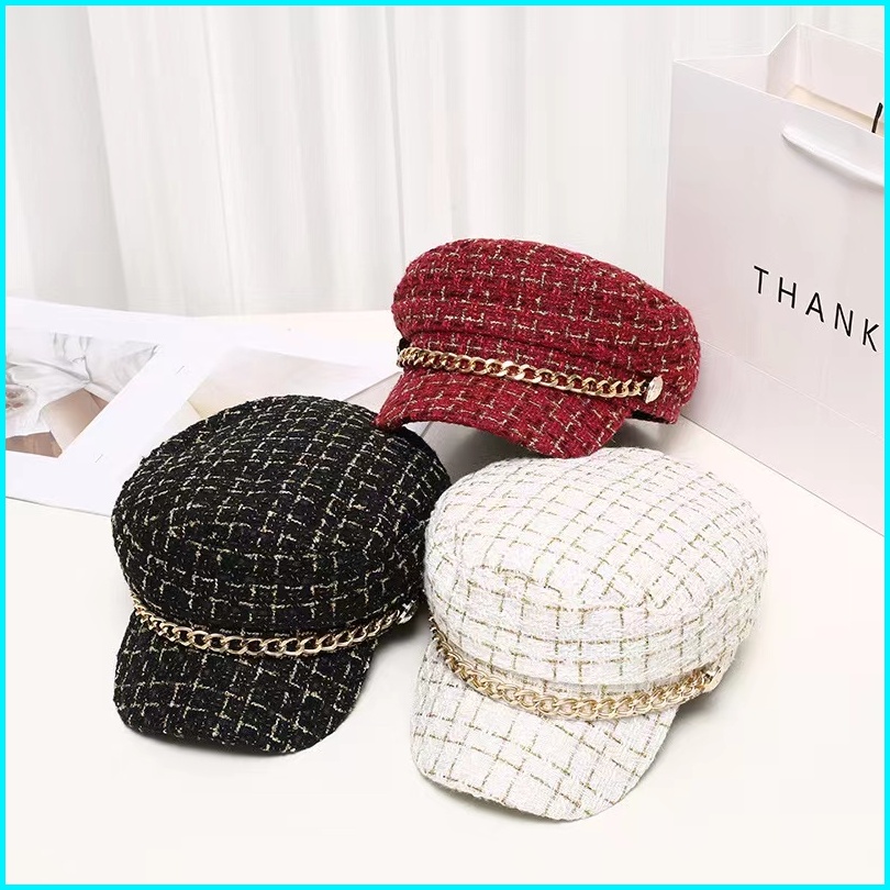Topi Baret Oktagonal Gaya Retro Untuk Wanita Dan Pria