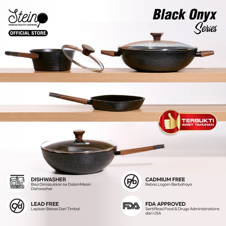Panci Anti Lengket STEIN Cookware Onyx Wok Pan 32cm German Lapisan Coating Granite Original