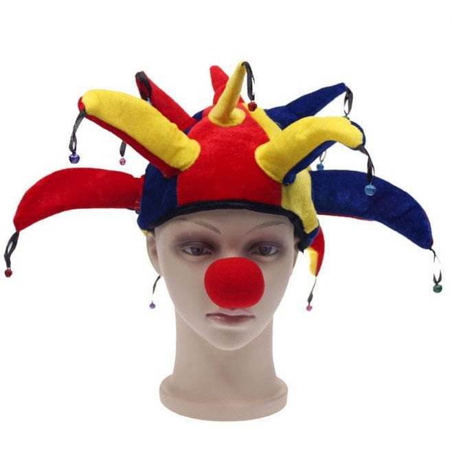 topi jester joker badut bonus hidung merah halloween pesta ulang tahun