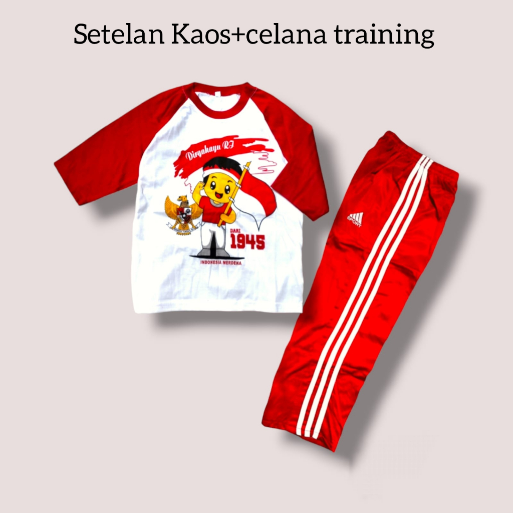 Setelan Agustusan anak 2024 baju lengan 3/4 dan celana training kaos kemerdekaan 17 agustus Hut Ri Dirgahayu Indonesia...
