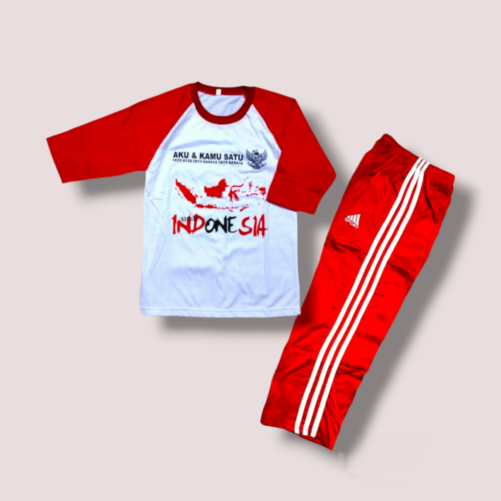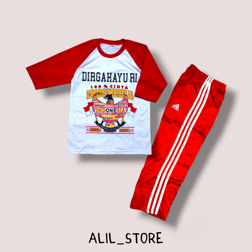 Setelan Agustusan anak 2024 baju lengan 3/4 dan celana training kaos kemerdekaan 17 agustus Hut Ri Dirgahayu Indonesia...