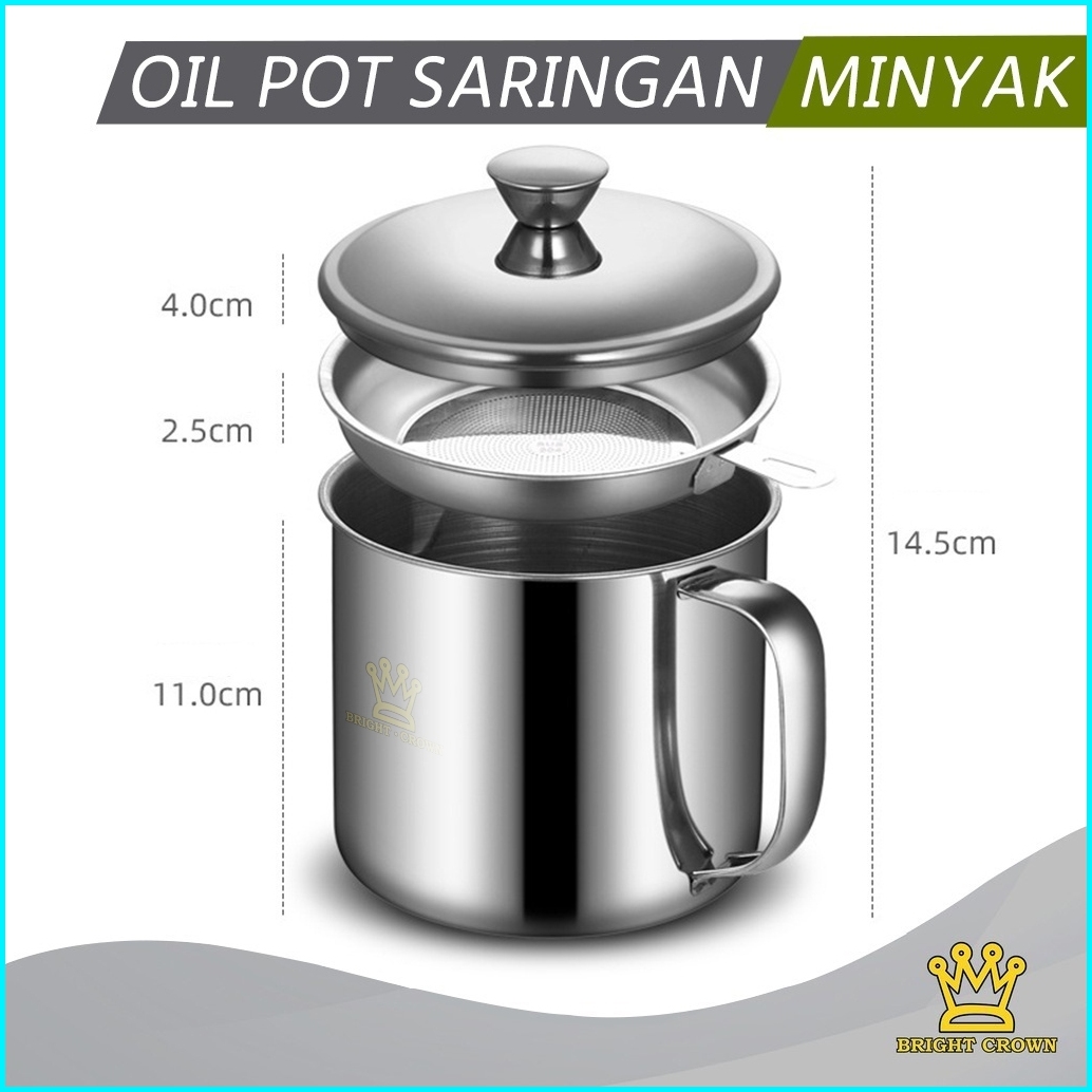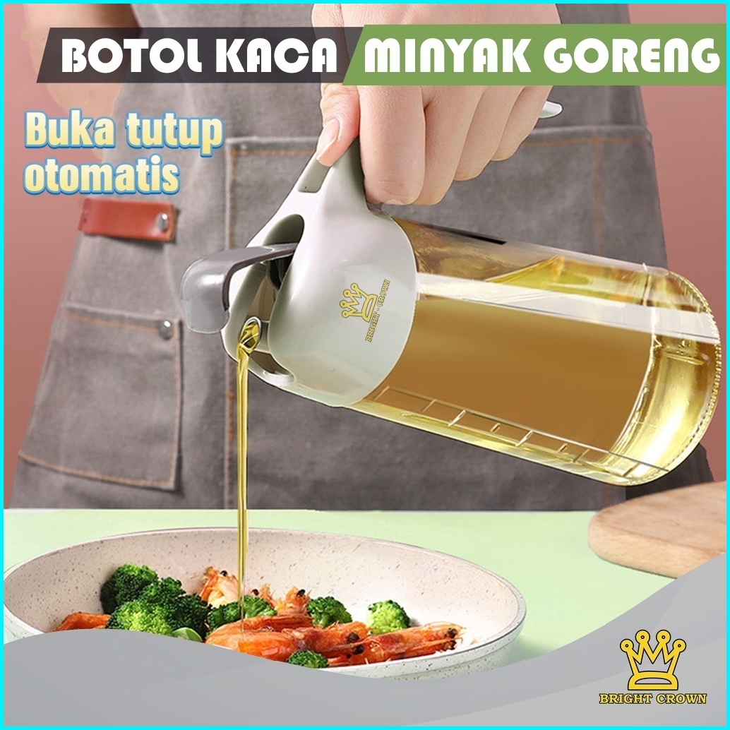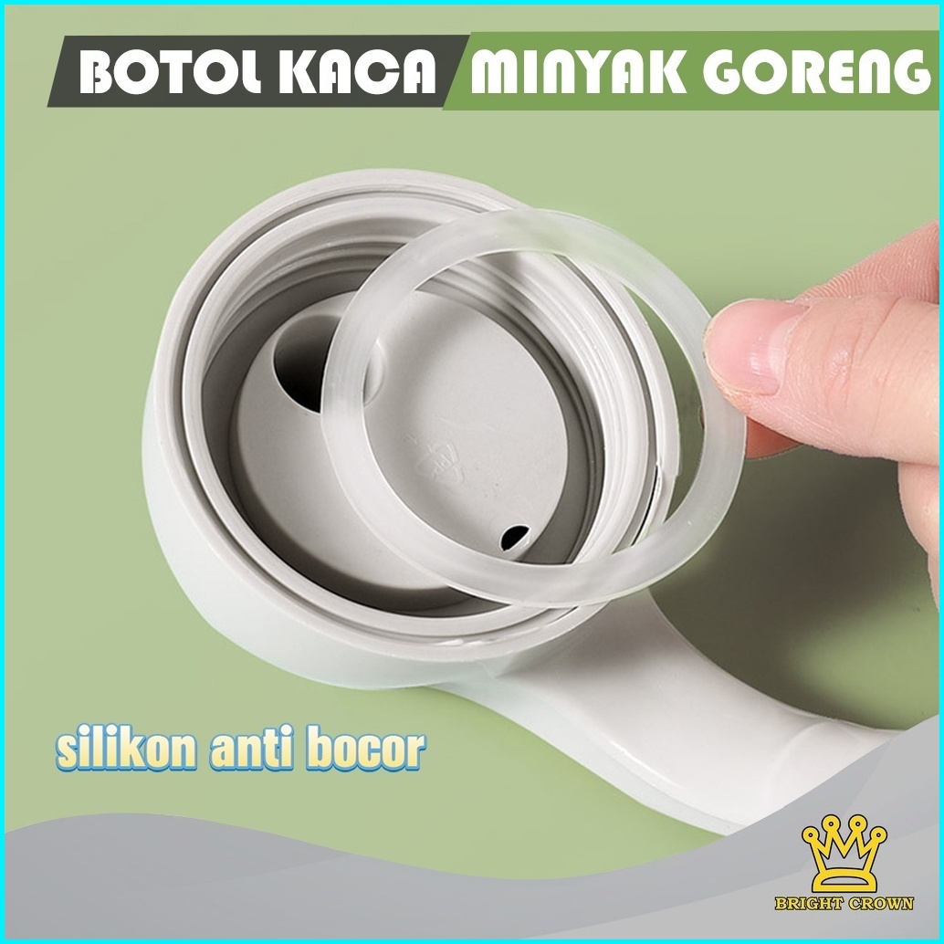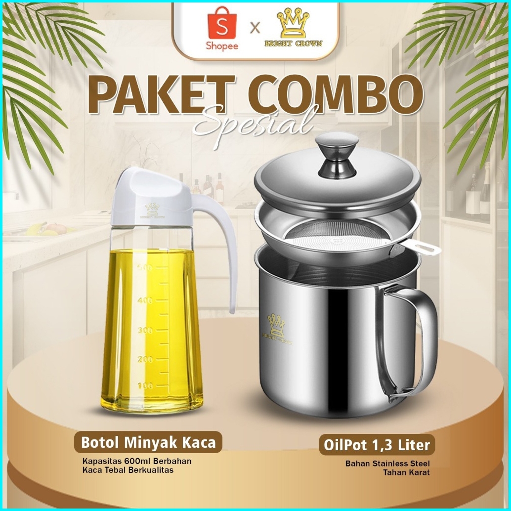 Bright Crown Paket Spesial Botol Minyak Kaca 630ml Oil Pot Wadah Minyak Stainless Steel 1 3liter