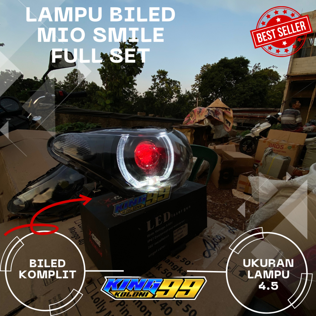 Lampu Biled Mio Smile 4.5 Putih Devil Merah Full Set