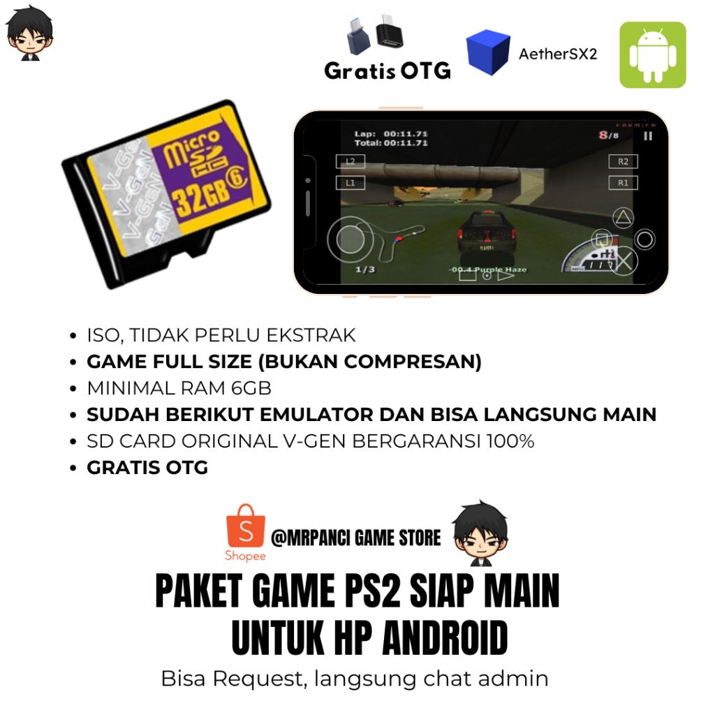 [Star] Paket game Ps2 siap main untuk Hp Android, V-Gen MicroSDHC 32GB