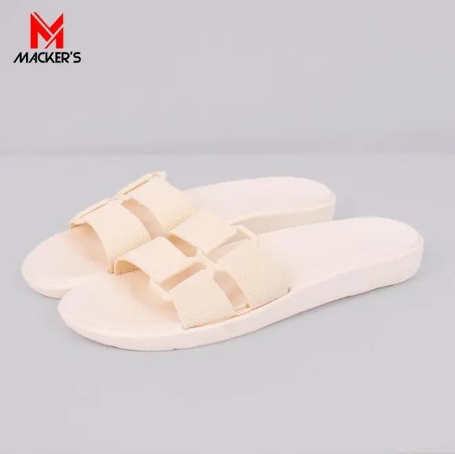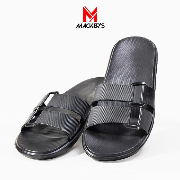 [Star][MACKER'S] 2303 Sandal Slop Wanita Polos Double Strap Sandal Wanita Ringan Empuk Bahan Karet coklat Shoes Sendal S