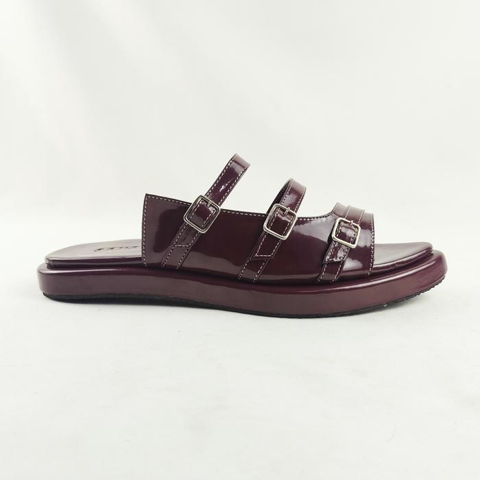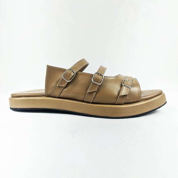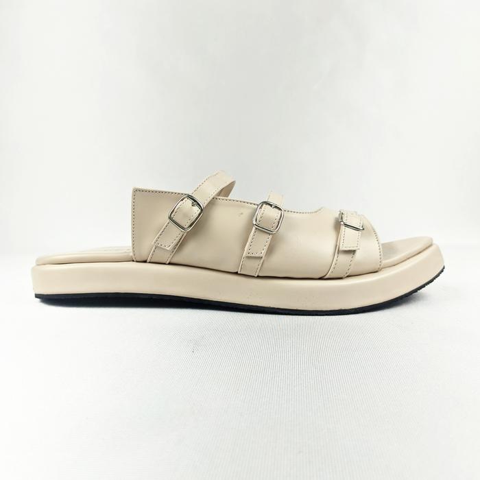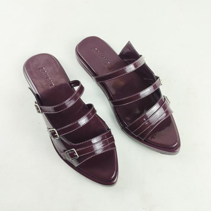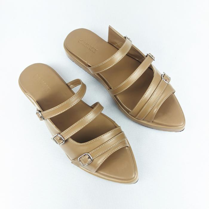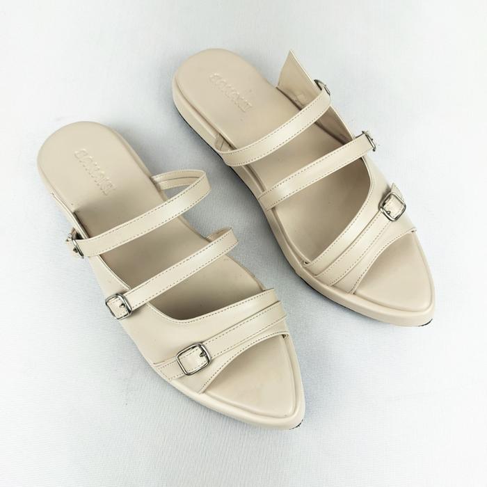 [Star]SAKAKI Rianie - Sandal Wanita Mules Flat SlipOn Gesper Lancip Hitam Sendal Cewek - HITAM, 37