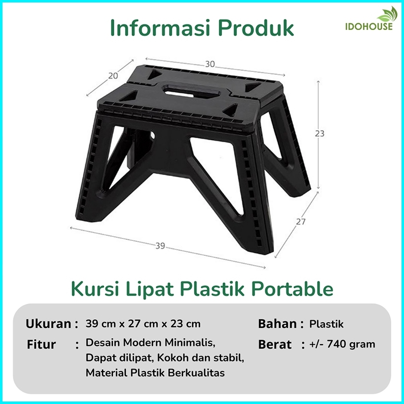 Idohouse Kursi Lipat Mini Outdoor Kuat Tahan 150kg Bangku Jongkok Praktis Travelling Plastik Anak