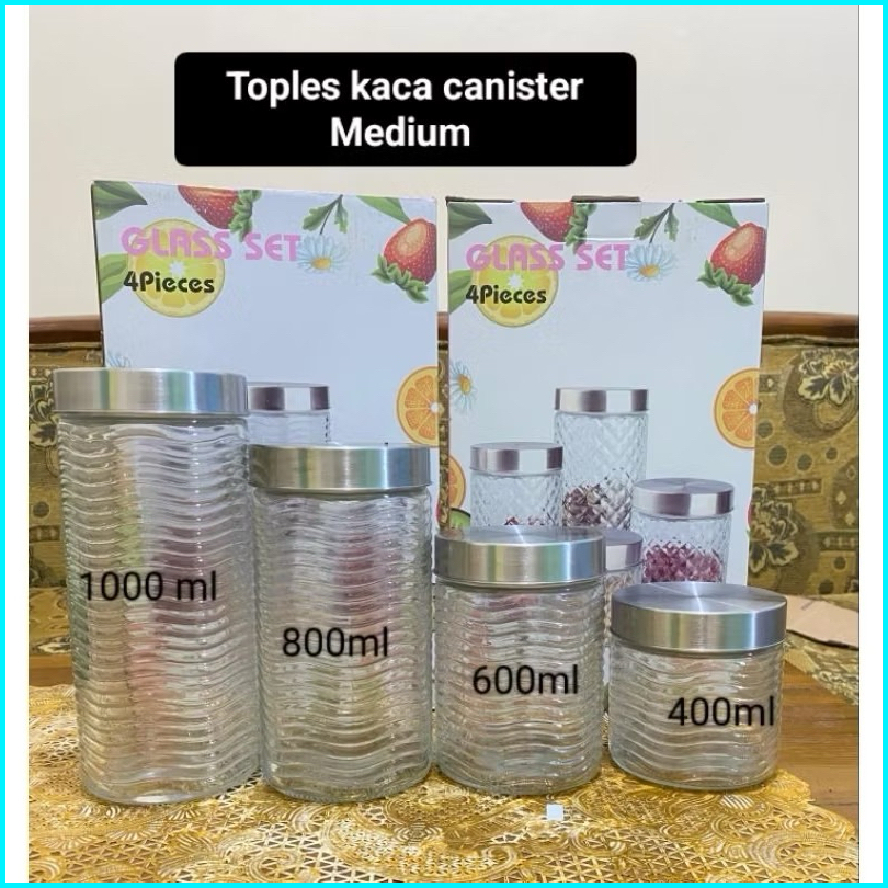 Toples Kaca Medium Set 4 In 1 Toples Kue Lebaran Elegant Mewah