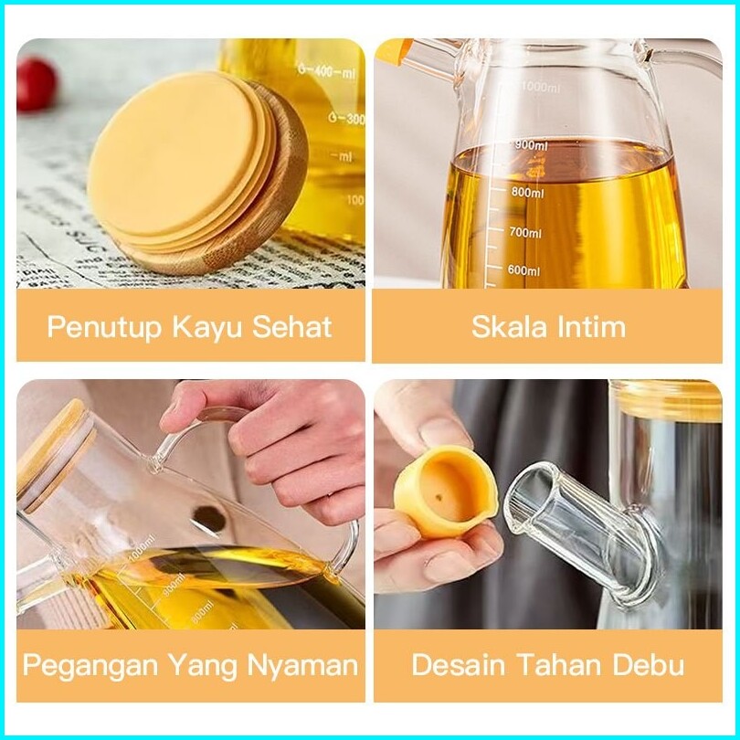 Eatkit Botol Minyak Kaca 1000ml Borosilicate Glass Oil Pot Tempat Penyimpanan Minyak Heat Resistant