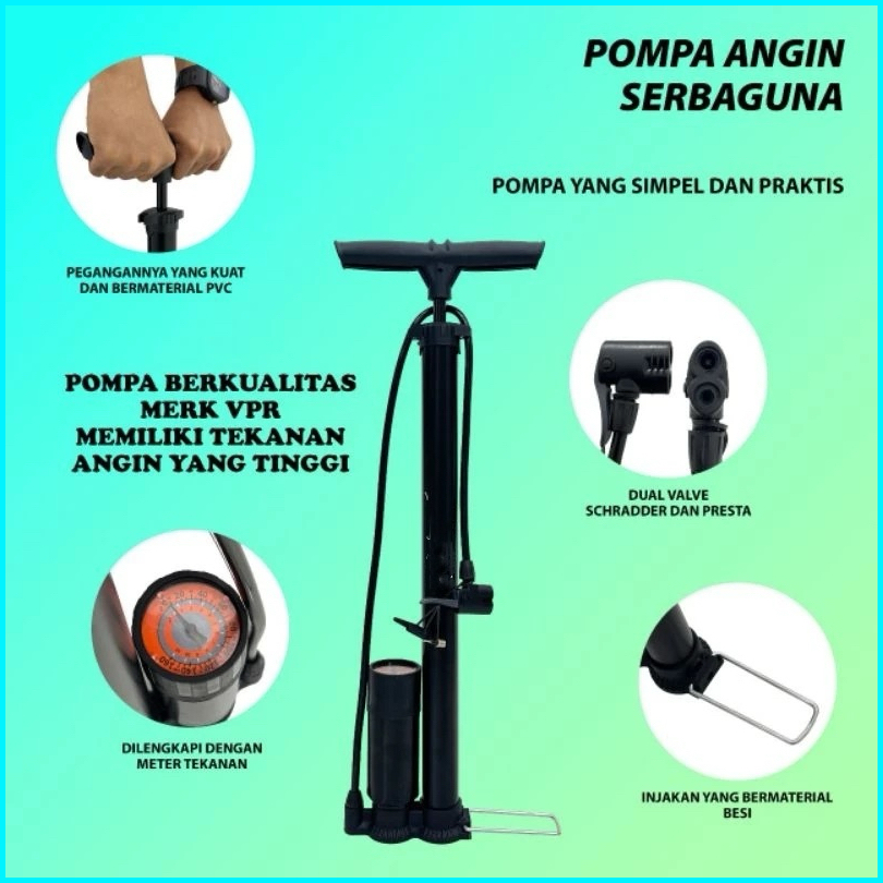Pompa Angin Ban Sepeda Dan Motor Kompa Sepeda Meter Tekanan Manual Dual
