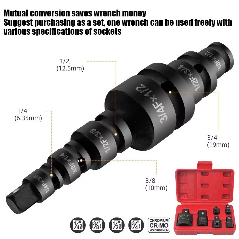 KUNCI SOCK RACHET 6 PCS CONVERTER ADAPTOR MATA SOK STANG L IMPACT SET 1/4 3/8 1/2 3/4 SAMBUNGAN SOKET SET Adaptor Kunci Shock