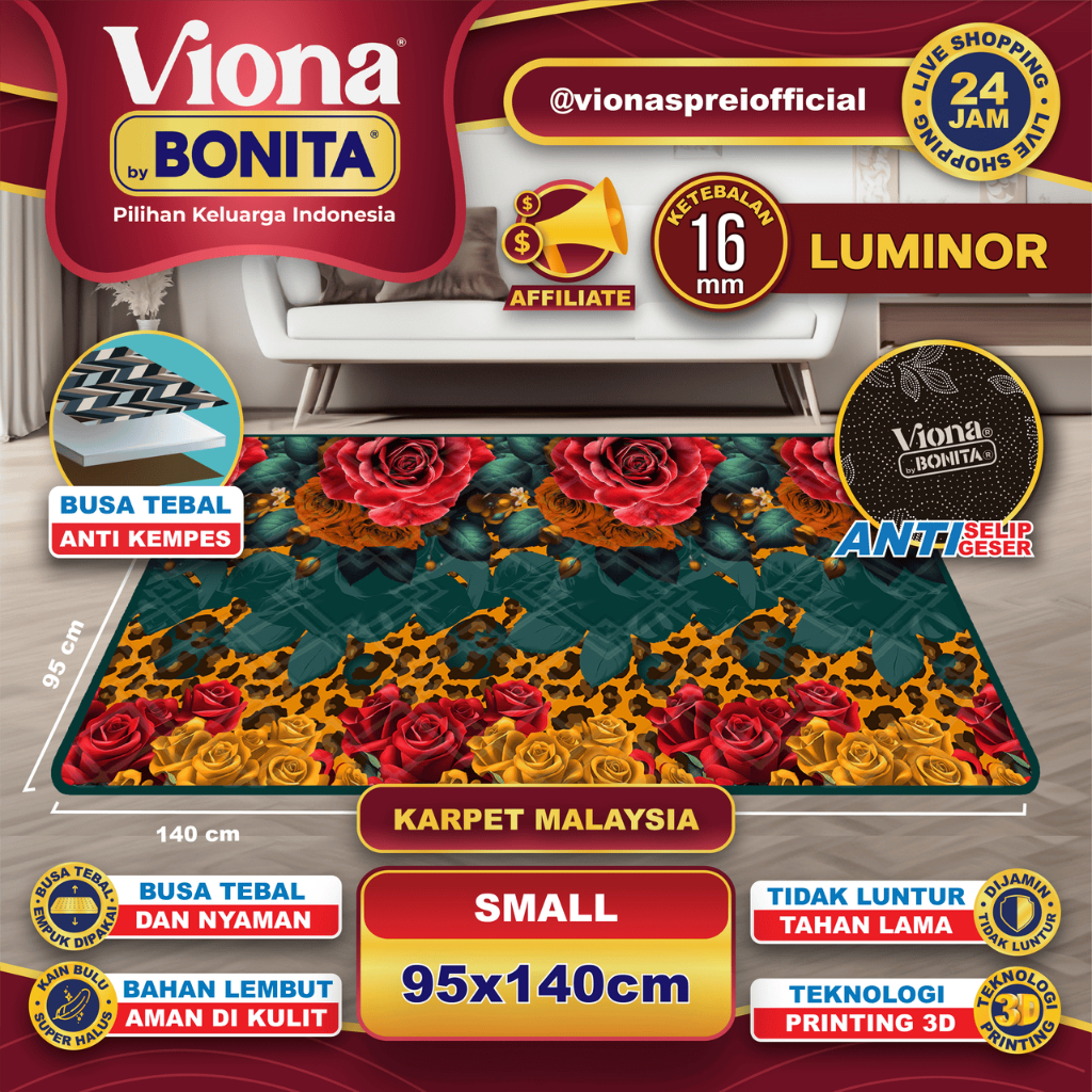 VIONA BONITA Official 95x140 Karpet Busa Malaysia 16mm Luminor Motif Bunga - Karpet Lembut & Anti Licin (AF)