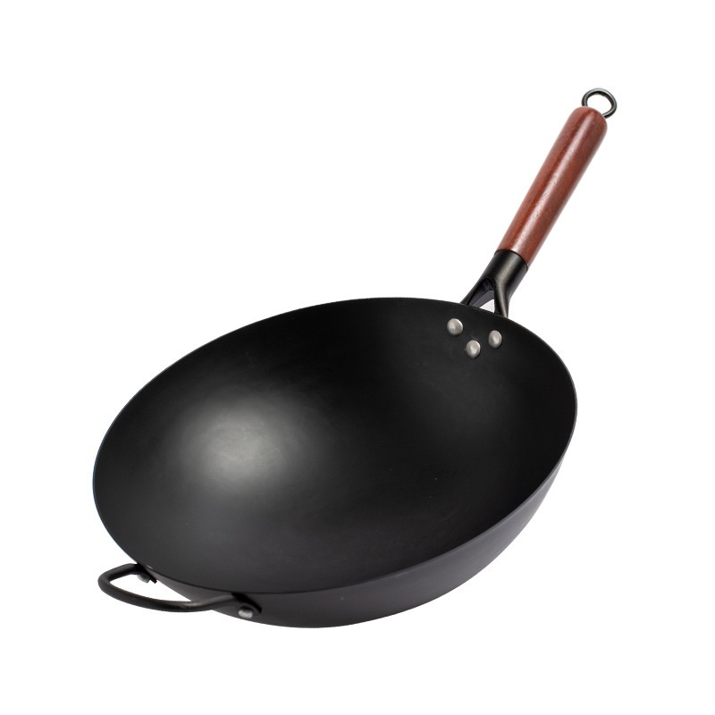 Wajan | Wok Baja Carbon Gagang Kayu | Kuali Carbon Tebal 24cm | 34 cm | 36cm