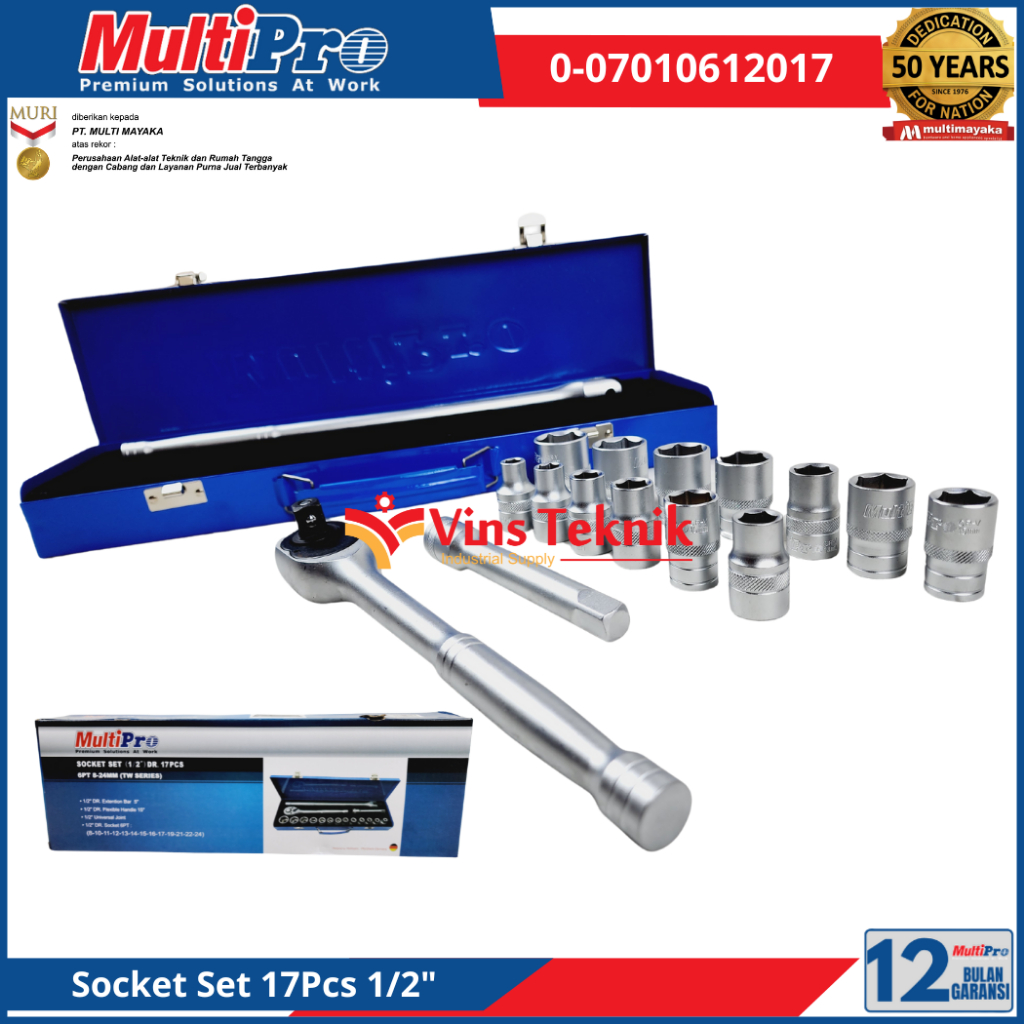 MULTIPRO Shocket Socket Set 17Pcs Kunci Sok kunci Socket Set 1/2" Kunci Set soket
