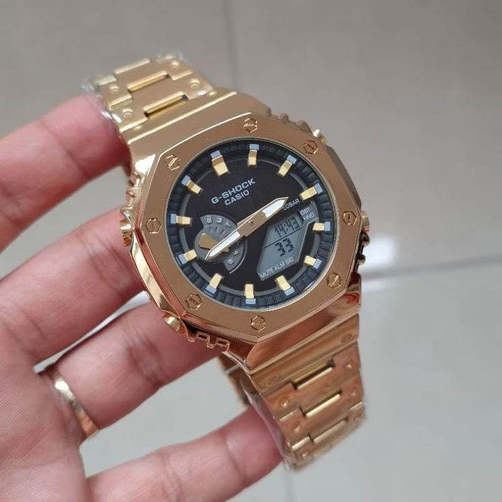 JAM TANGAN PRIA CASIO G-SHOCK GM-2100 ROSEGOLD BLACK STAINLESS STEEL FREE ONGKIR - FREE BOX