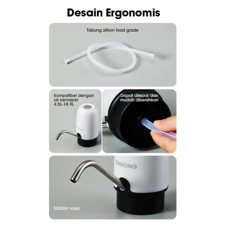 SAMONO Pompa Galon Elektrik Portable | Dispenser Air Minum Stainless Anti Karat Praktis & Hemat Tenaga