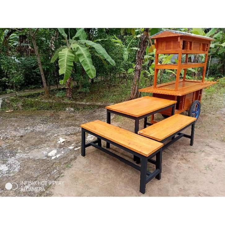 gerobak angkringan varian tengah dan satu set meja kursi kafe free ongkir