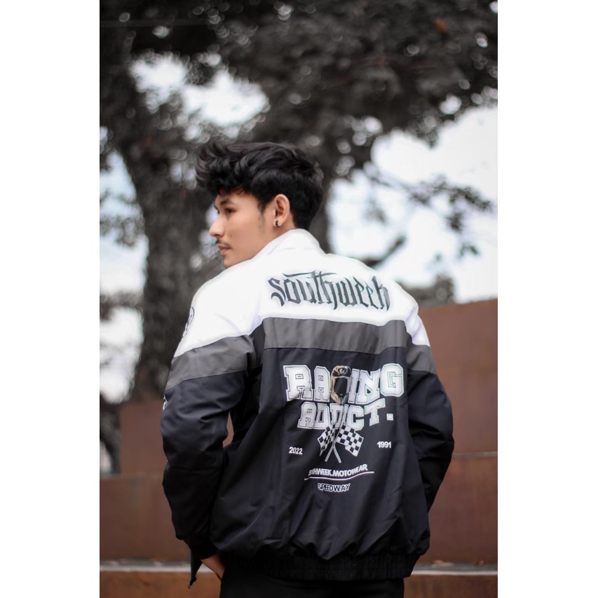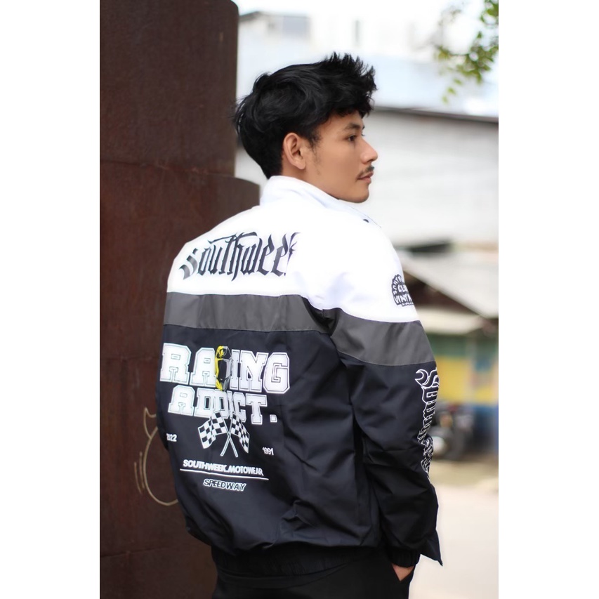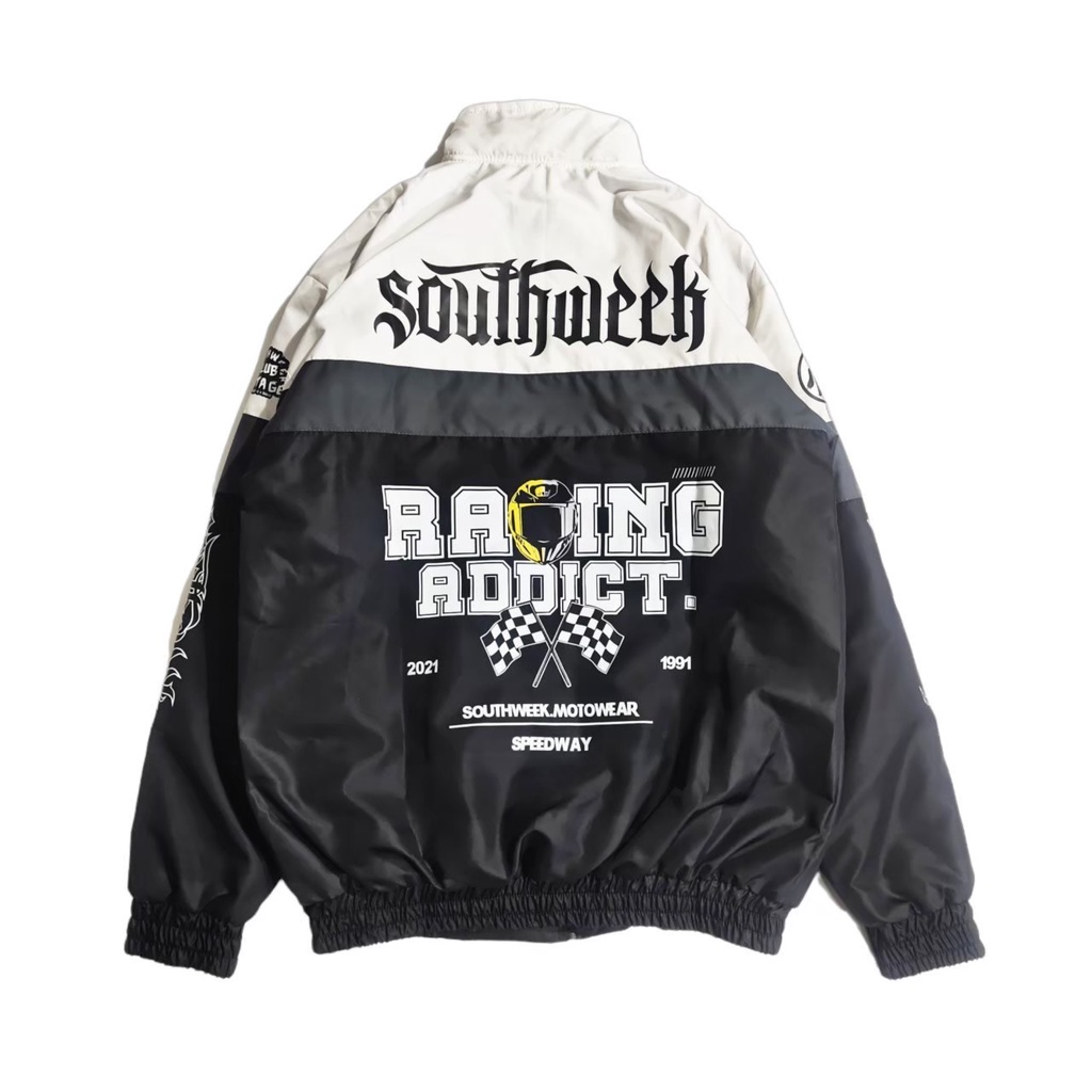 SOUTHWEEK JAKET PRIA NASCAR RACING VINTAGE SUNMORI ORIGINAL PRODUK PARASUT HITAM PUTIH MOTIF SABLON BORDIR