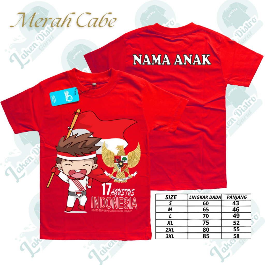 Lakendistro Kaos Anak Laki Laki Perempuan Kemerdekaan 17 Agustus Baju Distro 1-13 Tahun Combad 30s
