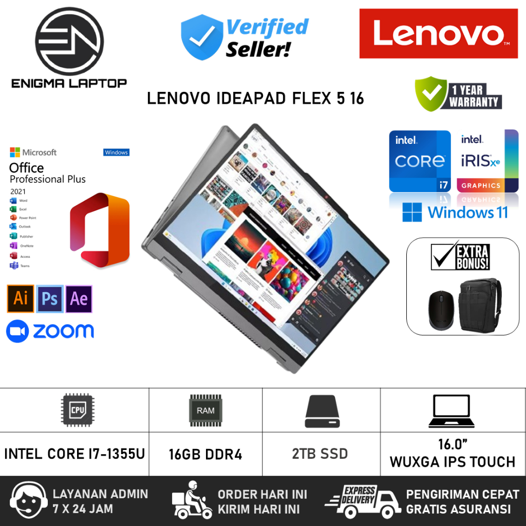 Laptop Lenovo Ideapad Flex 5 Intel I7 1355U 16GB 2TB SSD 16.0 Inch WUXGA IPS TOUCH WIndows 11