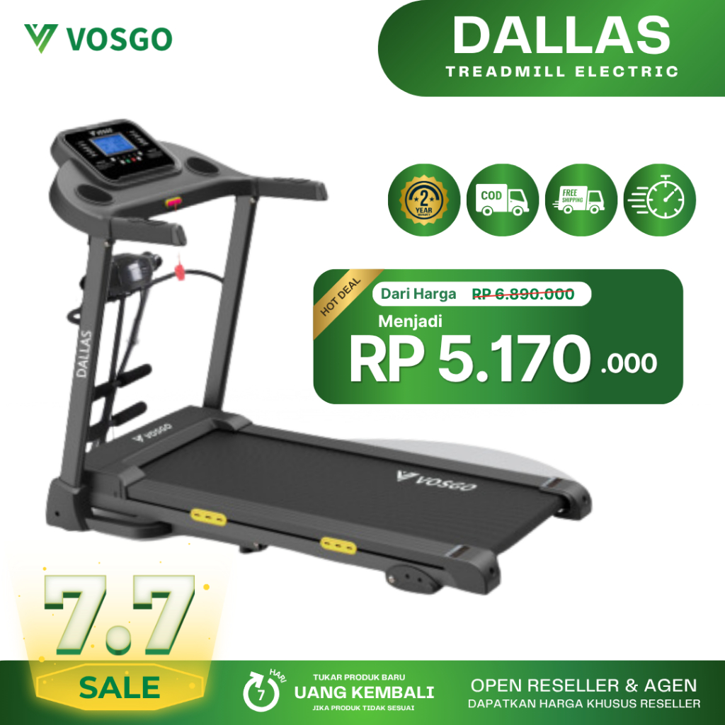 VOSGO Alat Olahraga Fitness Gym Treadmill Elektrik Listrik 2.5 HP Garansi Resmi 2 Tahun DALLAS
