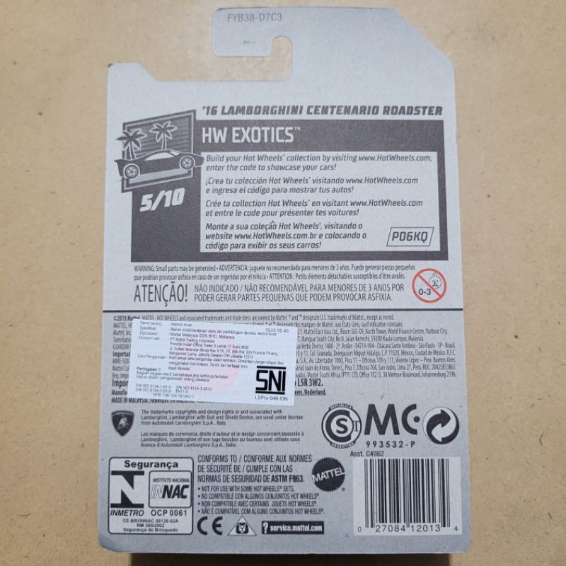 HOT WHEELS '16 LAMBORGHINI CENTENARIO ROADSTER / HW EXOTICS [ GREY ]